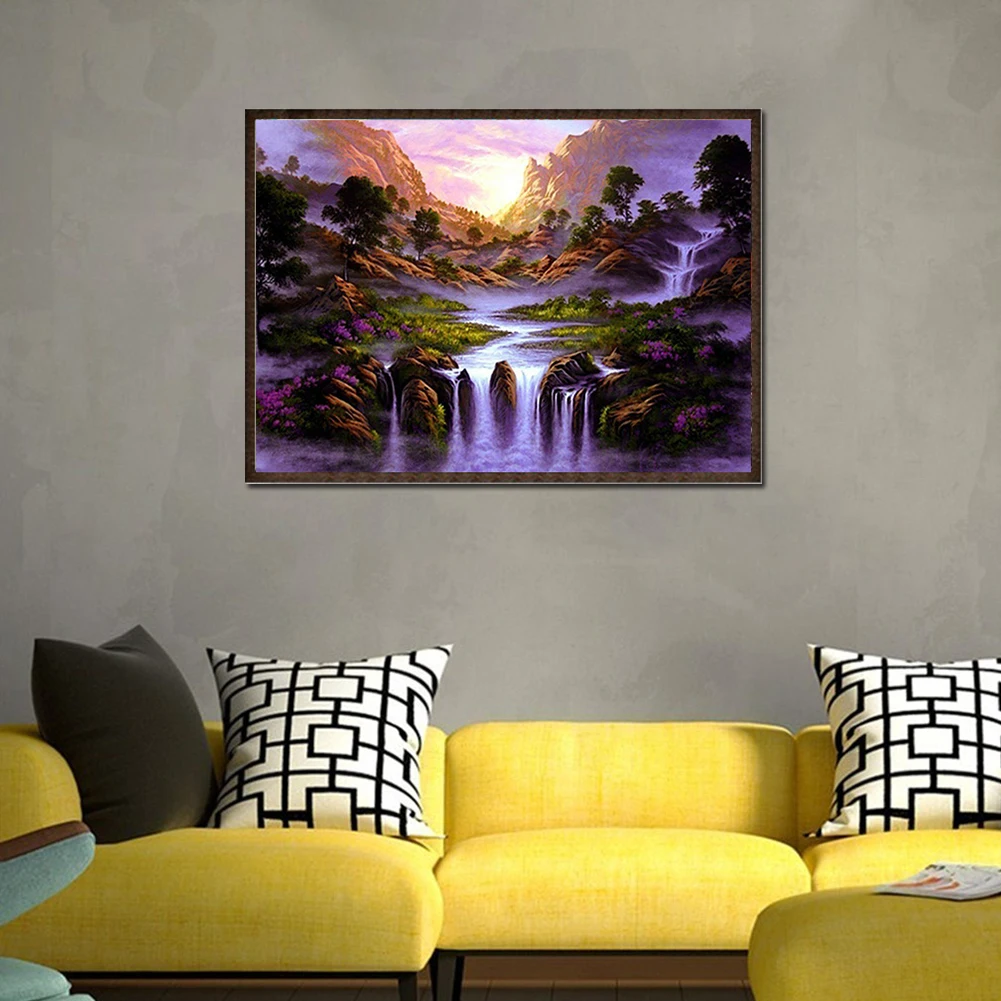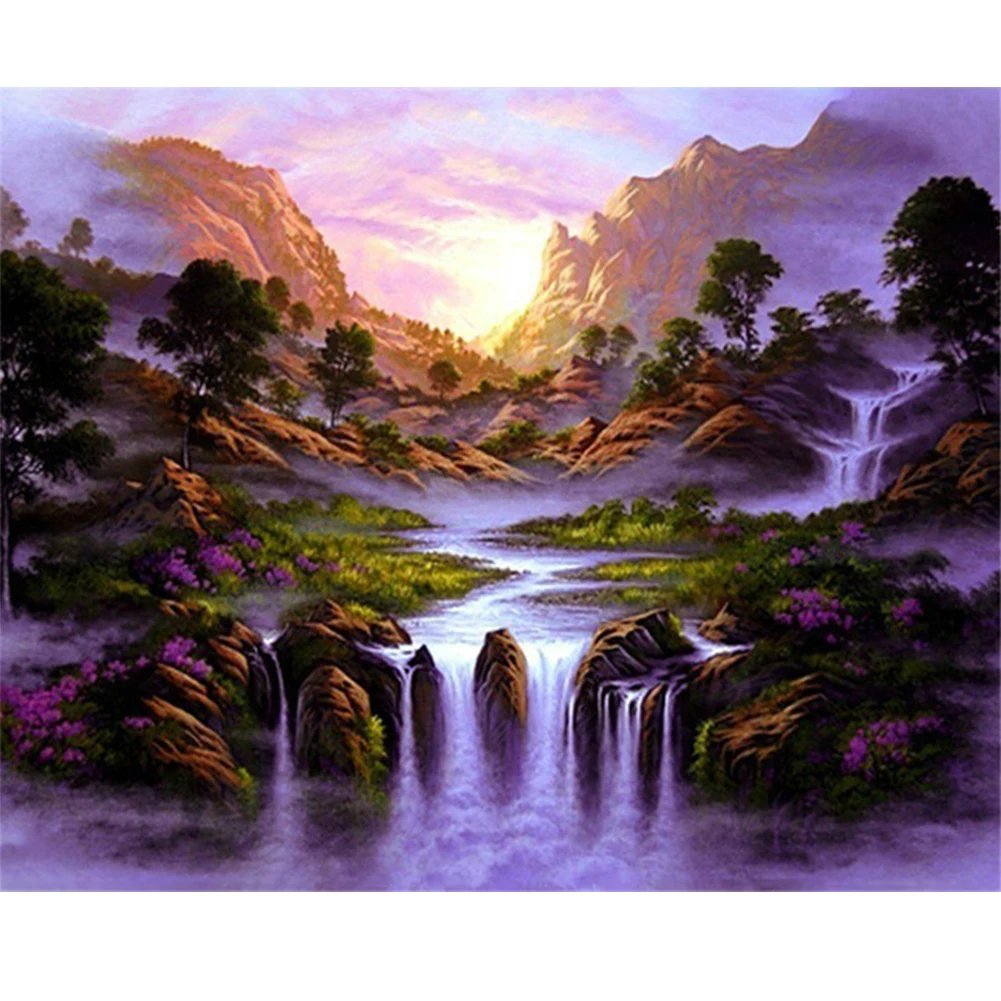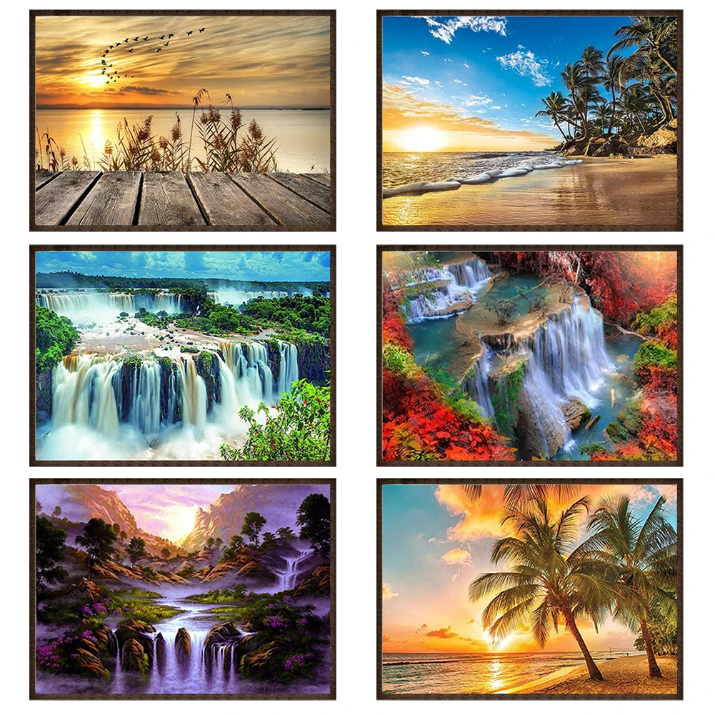 30x40 см пляж водопад вышивка крестиком DIY Полный Круглый Алмаз живопись