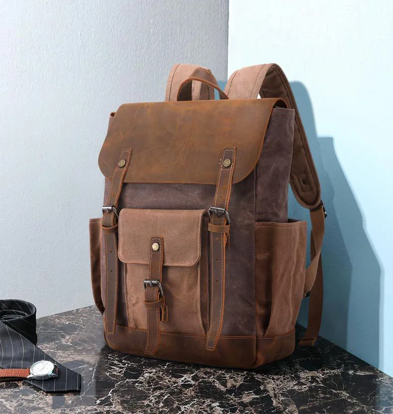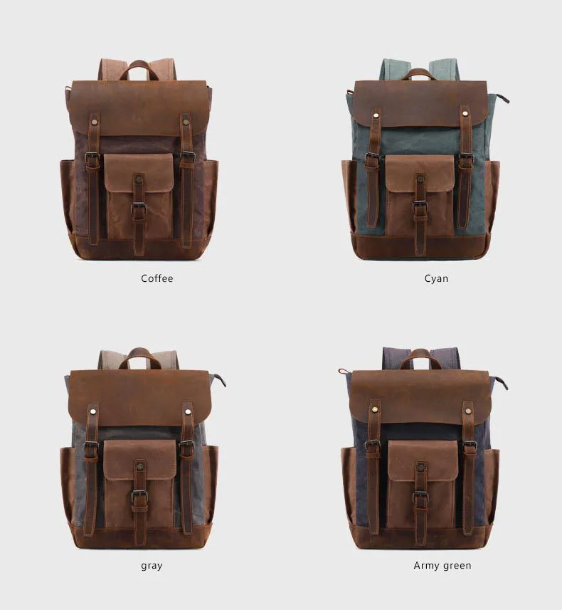 1. Материал: рюкзак изготовлен из водонепроницаемой вощеной холщовой ткани (водонепроницаемое полотно немного жесткое и сморщенное) и натуральной воловьей кожи. (Кожаная поверхность имеет беспорядочные морщины, шрамы, царапины, которые представляют стиль ретро и дикости), этот холщовый рюкзак имеет модный и винтажный внешний вид, чтобы быть идеальным дорожный рюкзак, 13,14, рюкзак для ноутбука, рюкзак для путешествий, походный рюкзак. 2. Дизайн:★Высококачественный водоотталкивающий вощеный холст, он может защитить ваши вещи внутри от внезапного дождя.★Благодаря широкому дизайну плечевого ремня вес рассеивается и обладает комфортом и долговечностью, этот ремешок может легко регулировать длину при необходимости.★Ручка для переноски сделана из той же воловьей кожи и закреплена высококачественной фурнитурой, что делает холщовый рюкзак простым в использовании.★Организованный рюкзак для ноутбука с быстрым доступом к любому из ваших вещей.★Медные заклепки и винтажная металлическая фурнитура 3. Карманы: несколько карманов дизайн:★Внутренний доступ к 1 большому основному отделению для компьютера, книг, принадлежностей или одежды; 1 основное плотное эластичное/Мягкое отделение для ноутбука на липучке; 2 скользящих кармана + 1 Настенный Карман на молнии внутри для хранения сотового телефона, автомобильных ключей, бумажника и т. д.★Внешний доступ к 1 переднему карману с клапаном и 2 боковыми карманами. 4. Вместительный: многофункциональный карманный дизайн позволяет вам попрощаться с дезорганизацией. Этот холщовый рюкзак может вместить папки, файлы формата А4, книги, iPad, косметику, мобильный телефон, зарядное устройство, бутылку воды, кошелек, Ланч-бокс и многое другое. 5. Это отличный рюкзак для повседневной жизни. Вы можете использовать его в любое время года, в бизнес, школу, колледж, Пешие прогулки, случайные поездки, выходные, кемпинг, дневные поездки и так далее.