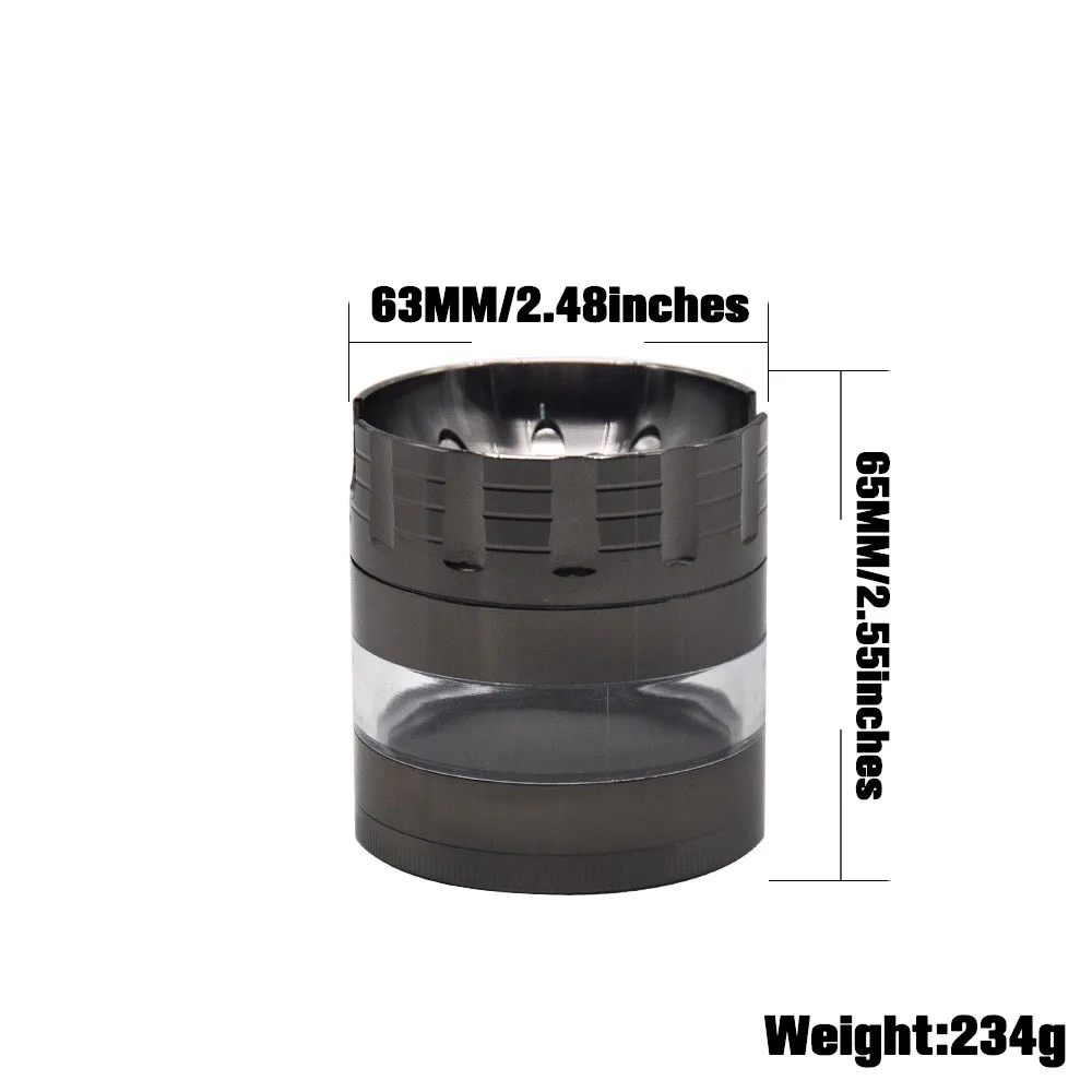 Материал: высококачественный цинковый сплав и стекло Диаметр: 63 мм/2,48 дюйма Высота: 65 мм/2,55 дюйма Вес нетто: 234 г/шт. Цвет: Черный (как на фото) Слоев: 4 шт Зубы: острые алмазные зубы Использование: для резки табака Дизайн: с держателем для сигарет
