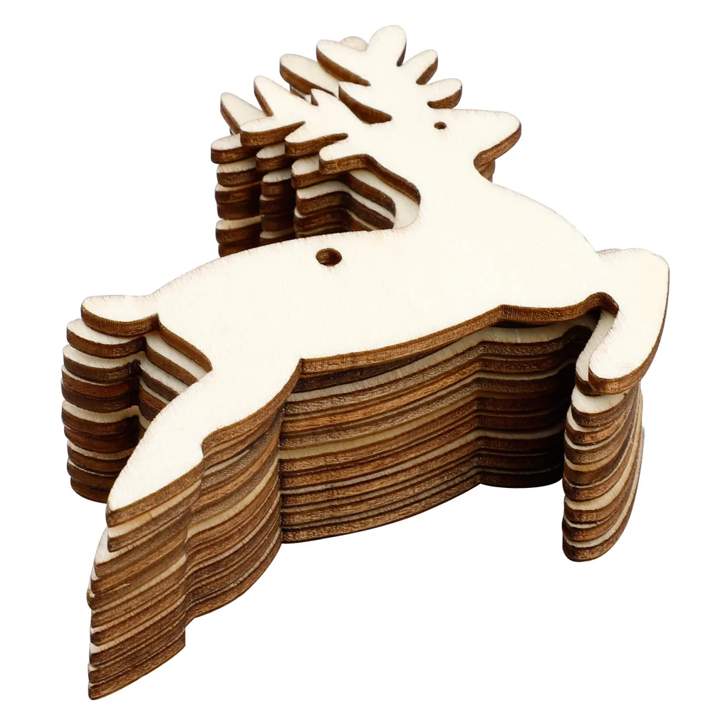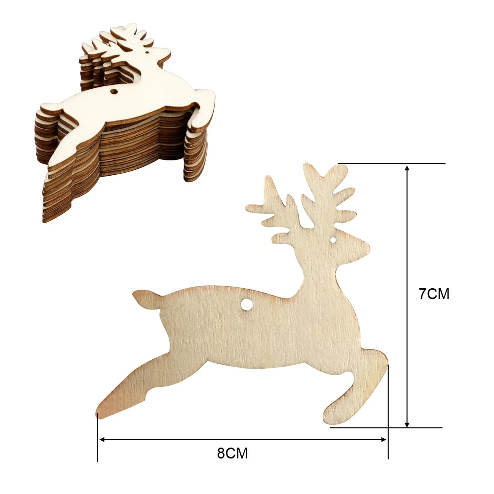 -Обе стороны поверхности рождественских деревянных украшений отполированы, делают их чистыми и гладкими, легко окрашивают или граффити на них, также каждый деревянный кусок разработан с отверстием, удобно повесить, создайте атмосферу ретро для ваших рождественских вечерние.