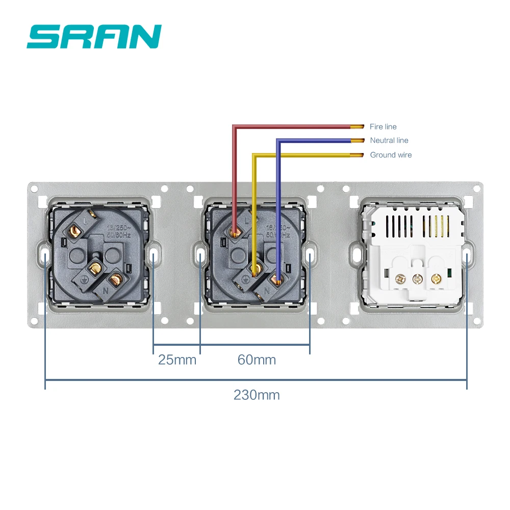 Стандарт 16A двойная/Тройная рама заземленная европейская вилка Входное напряжение: 110-250 В Напряжение на выходе USB: 5V 2100ma 1usb розетка + 1 розетка (172 мм * 86 мм) 1usb розетка + 2 разъема (258 мм * 86 мм) Требуется 86 Квадратных Коробок