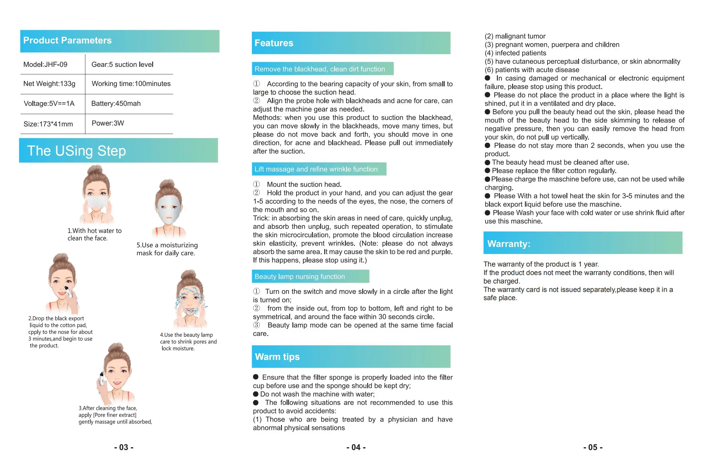 1. Удалите черную головку, очистите функцию грязи 2. Поднимите массаж и уточните функцию морщин 3. Функция ухода за косметическими лампами