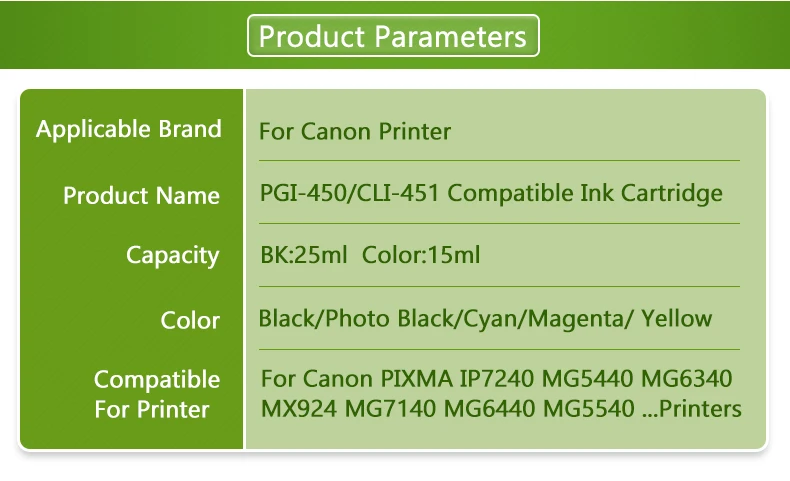 2 шт. X PGI 450 XLЧернильный картридж черного цвета, полный с чернилами с чипом