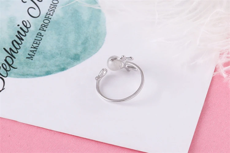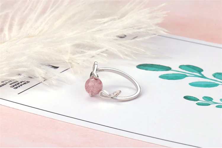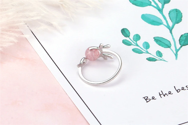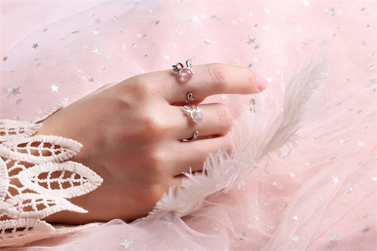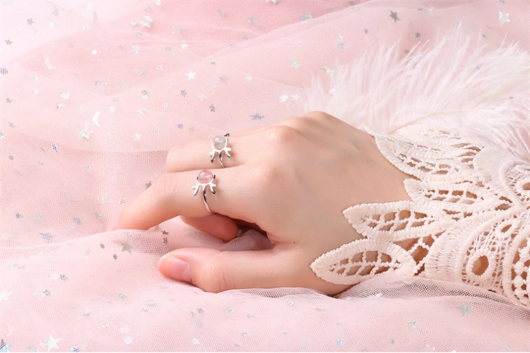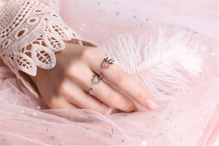 Милые регулируемые оленьи рога, кошачья голова, опал, чудесная божья коровка, кот Нуар, кольцо для вечеринки, клубника, кристалл, розовый, серый, серебро 925 пробы, супер кошачьи ушки, кольцо для женщин, рождественский подарок
