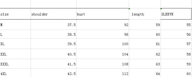 Таблица размеров