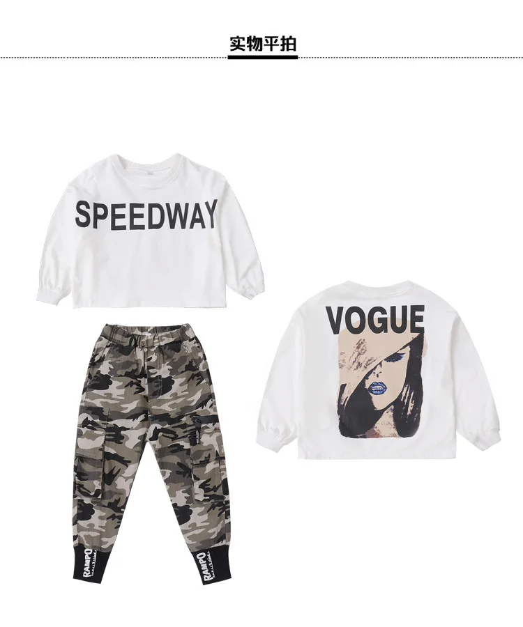 Комплект осенней одежды для девочек, Новинка осени 2019, модная футболка с длинными рукавами + камуфляжные штаны, одежда для девочек 10-12 лет, одежда для подростков