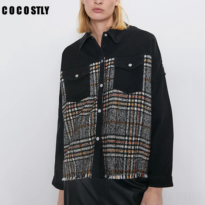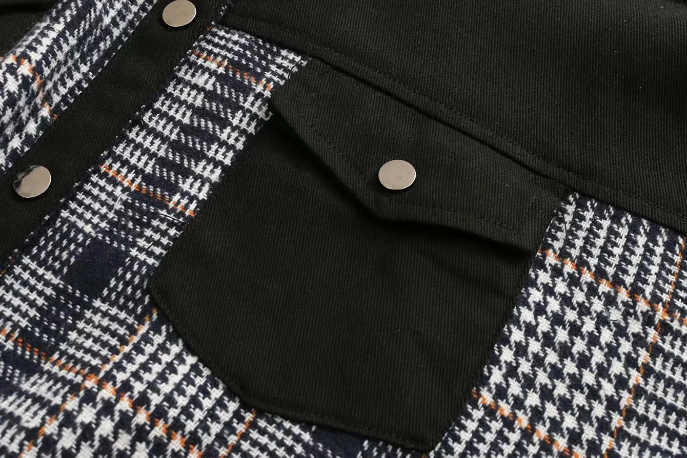 Зимняя женская куртка, винтажная клетчатая Лоскутная куртка с карманами, пальто с длинным рукавом, Женская Повседневная Верхняя одежда большого размера, топы mujer