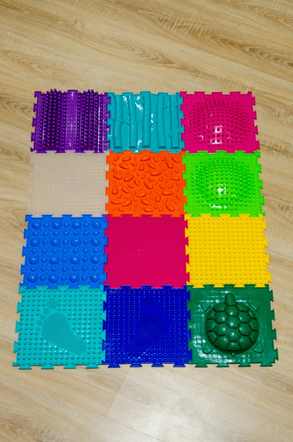Данный набор состоит из 12 модульных ковриков. Сочетание разнопрофильных и разножёстких модулей позволяет проводить упражнения на них с максимальной пользой. Богатая цветовая палитра ковриков поможет ребёнку в изучении разнообразия цветов.