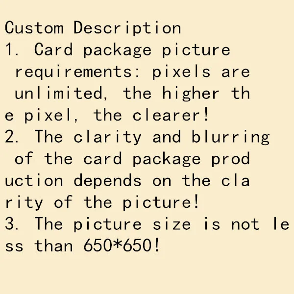 "Длина" открывается около 16 см в длину "Материал" изготовлен из высококачественного ПВХ металлические кнопки На странице емкости 20 карт, которые могут быть дважды вставлены. Тип застежки кнопки "Открытка на заказ требования к упаковке" Размер изображения большой и четкий, пиксель более 600, передние и задние сообщения