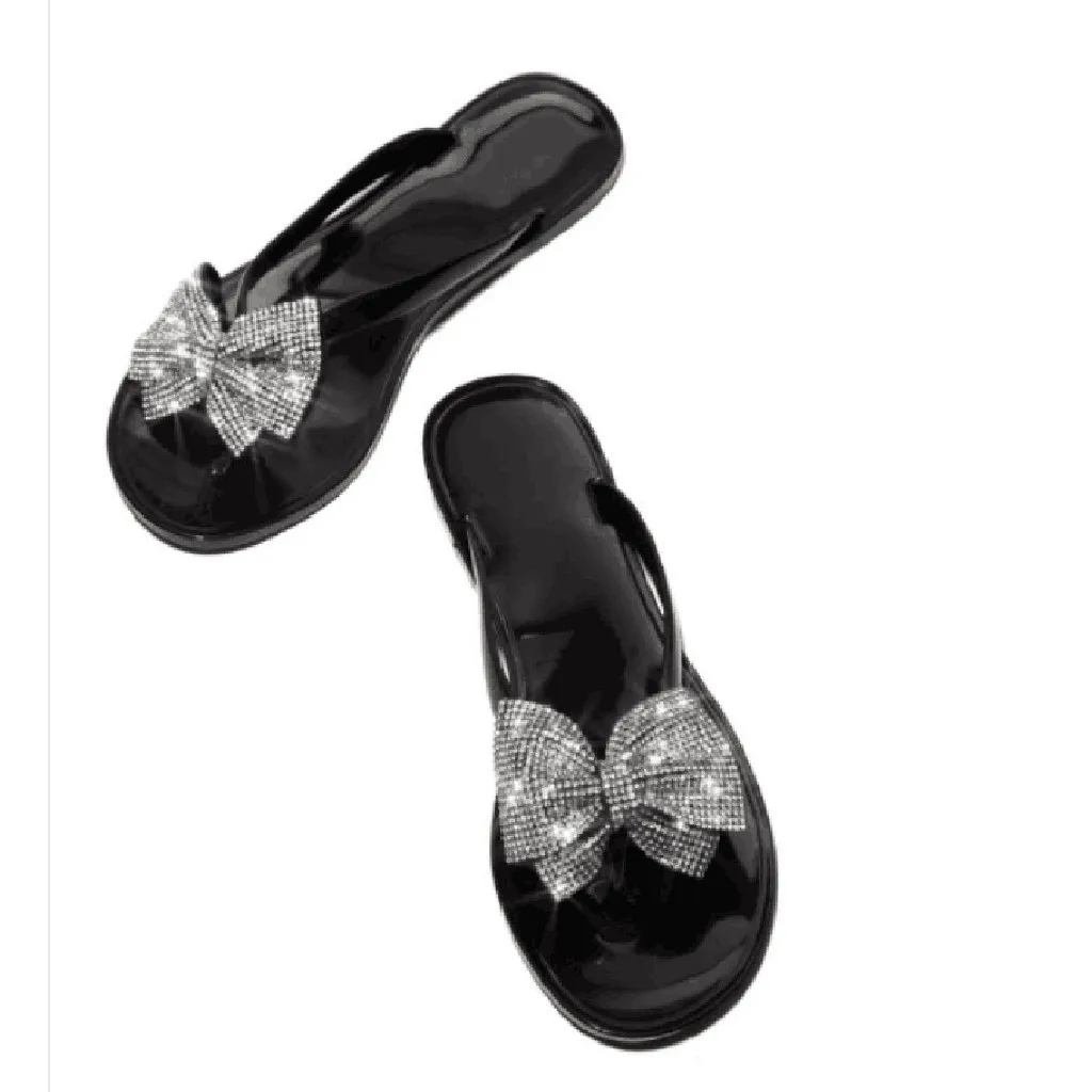 Женские Вьетнамки; шлепанцы; 42; Летние повседневные Модные пикантные Милые Пляжные Тапочки с бантом; бурение; удобные сандалии на плоской подошве; нескользящие блестящие сандалии