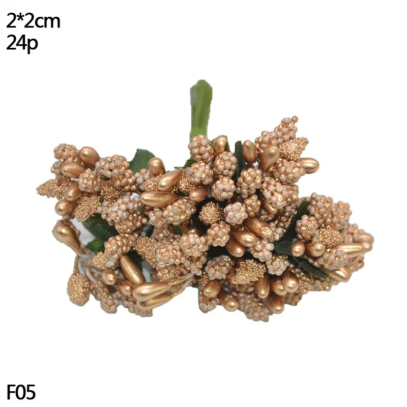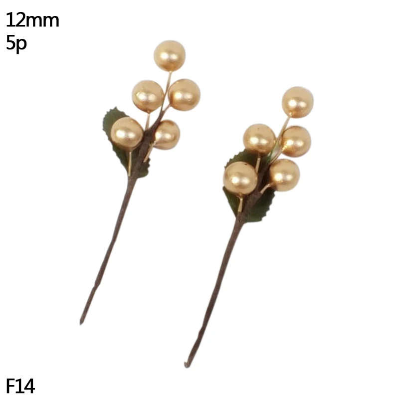 Gold Decorative Berries Artificial Flower Cherry Berry Stamen Wedding Wreath Bridal Shower DIY Craft Garlands Home Party Decor