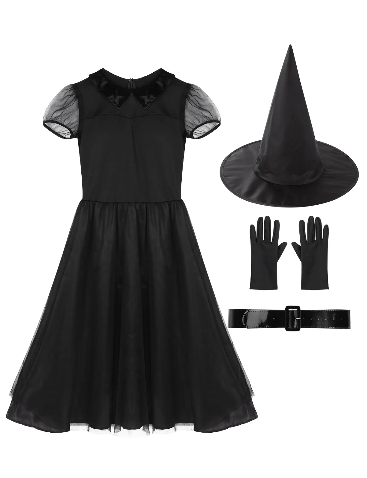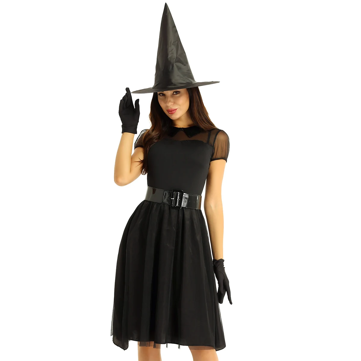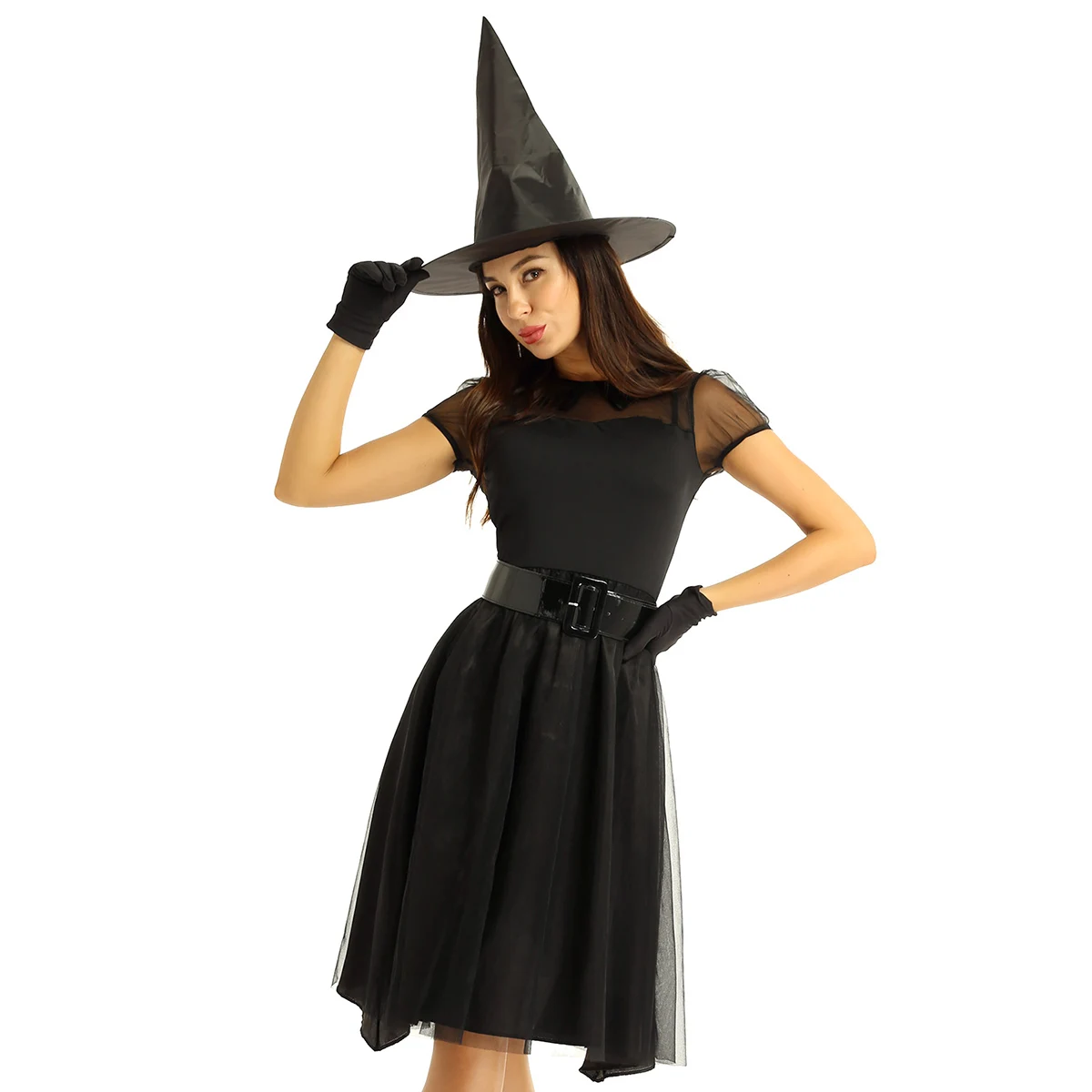 Лучший костюм злой ведьмы в паре с поясом, головной убор с острым носком и парой перчаток. Хорошая эластичная ткань, мягкая и удобная в носке.