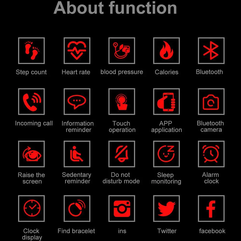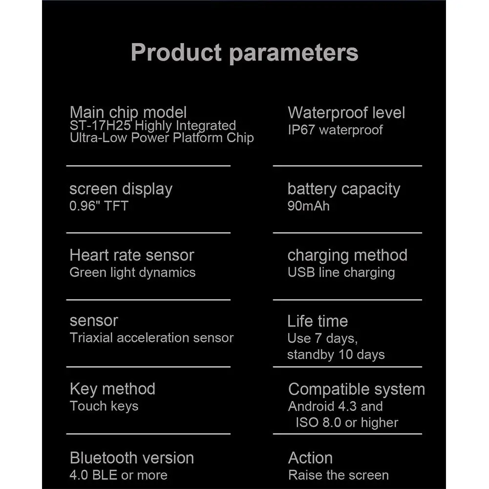 Функция: Динамический пульс, измерение артериального давления, спортивный шаг (3D-датчик), расход калорий, расстояние упражнений, Bluetooth ссылка, напоминание о звонках, напоминание о сообщениях, поднятие экрана руки, умный будильник, найти браслет, удаленное фото, напоминание о сидячем положении, мониторинг сна, информация push (SMS, Facebook, Twitter, WhatsAPP и т. Д.) считывание информации и т. Д.