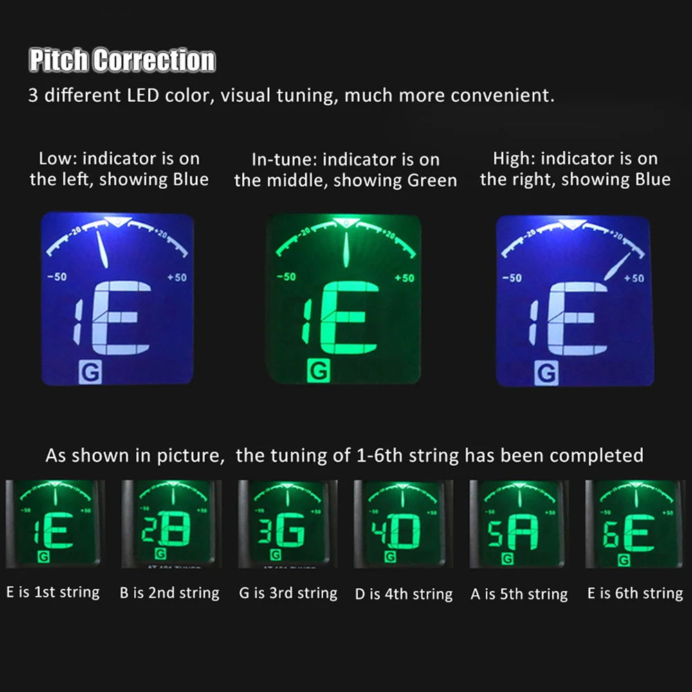 Компактный тюнер с зажимом для хроматической/гитары/бас/укулеле/скрипки.
