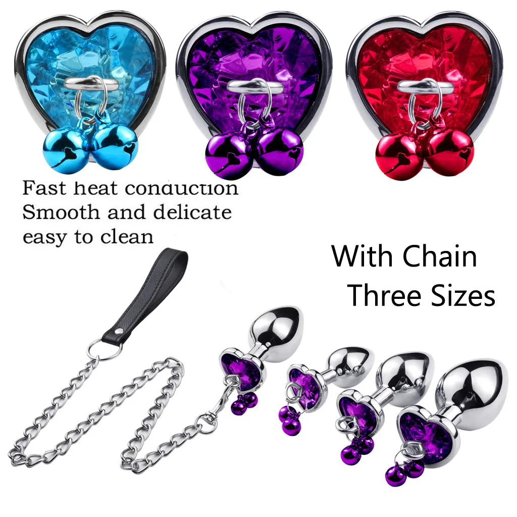 В форме сердца база колокольчик с цепочкой сердце ювелирное основание Анальная пробка Вагина Массажер вилка с цепочкой секс-игрушки