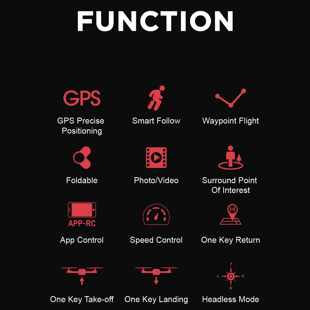Расширенный 5G WiFi 2 K HD Камера: модернизированная камера с контрольным объективом вверх и вниз для записи Незабываемый момент. 5G wifi передача обеспечивает высокое качество в реальном времени Видео-идеалы для селфи Gps помощь Полёт: обеспечивает точное позиционирование вашего дрона. Встроенный При возврате в дом (RTH) функция для более безопасной мухи, Дрон будет автоматически Вернитесь в дом точно, когда его батарея Низкая или сигнал слаб, когда Летающий вне диапазона, никогда не беспокоясь о потере дрона. 15-17 минут Макс полет Время: Интеллектуальная батарея высокой емкости 7,4 в 1200 мАч выдает до 15 -Время полета 17 минут. Follow Me (следуй за мной) Режим: Дрон будет автоматически следить за вами и захватывает вас, где бы вы ни находились Двигаться. Держать вас в кадре в любое время, легче получить сложные снимки, Обеспечивает свободный от рук Летающий и селфи Опеределяемый пользователем полета План: откройте приложение drone, используйте план полета под рукой, просто нарисуйте a По пути на экране, вертолет будет автоматически для пилота согласно приведенному Путь. Режим орбиты: режим орбиты Пусть Дрон летит по кругу вокруг набора waypoint и убедитесь, что вы Получайте панорамные фотографии и видео. Простое управление: Удержание высоты и один ключ взлета и посадки для легкой работы, легко Контроль, идеально подходит для начинающих. Конфигурация Функции: вперед, назад, подъем, падение, поворот влево, поворот вправо, Летающий влево и вправо, Безголовый режим, возврат одной кнопки, фиксированный дроссель, Одна кнопка аварийной остановки, с защитой карты. Угловая защита, С верхней и нижней функцией управления линзами сервопривода (возврат одного ключа Высота автоматически увеличивается до 30 метров) (обнаружение низкого напряжения Мощность около 20%, Автоматическая высота возврата автоматически увеличивается До 30 метров) gps фиксированная точка, объемный, waypoint, карта пикселей 2048x1152 (Карта памяти должна быть предоставлена), мобильный телефон ручка-фиксатор пикселей 1280x720Технические характеристики изделия:
