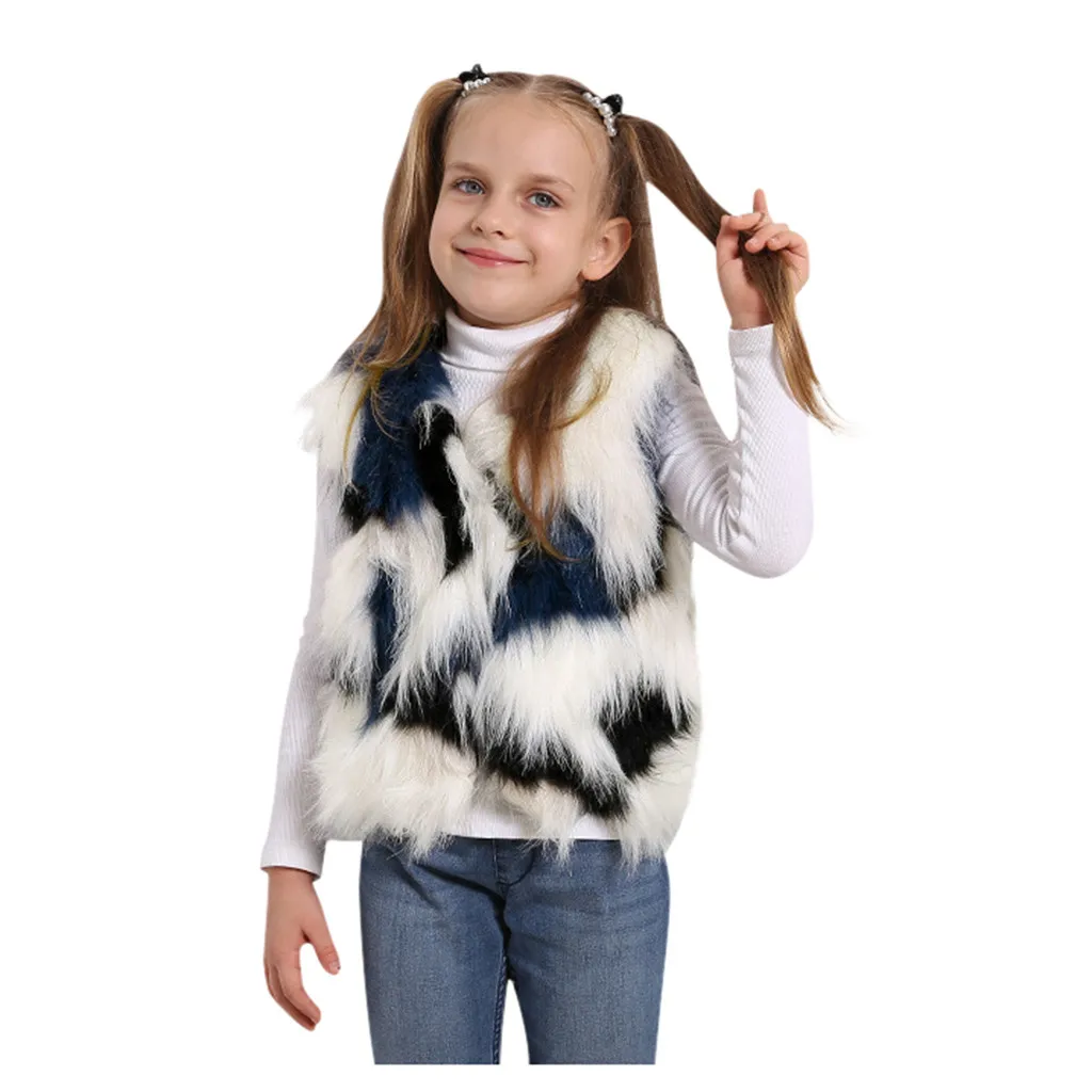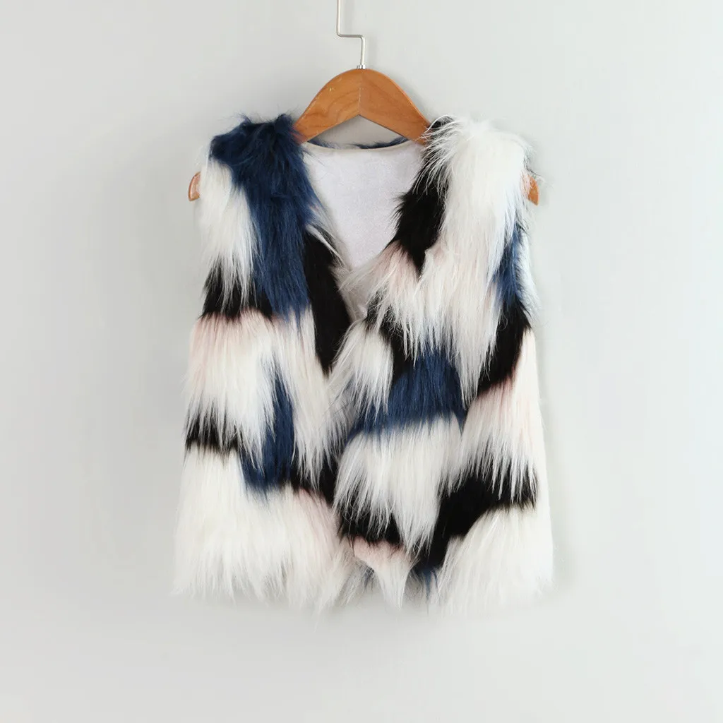 Зимнее теплое плотное пальто из искусственного меха для маленьких девочек верхняя одежда, жилет