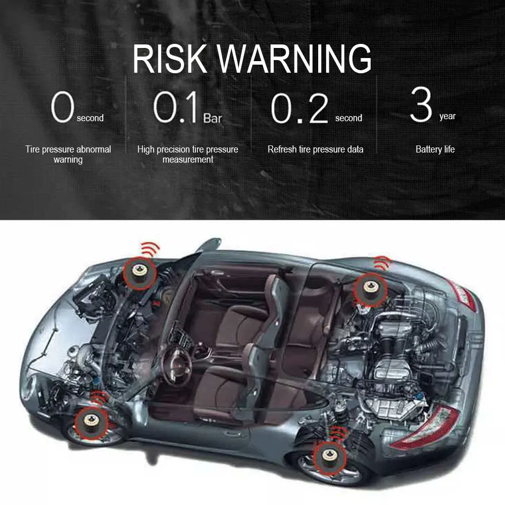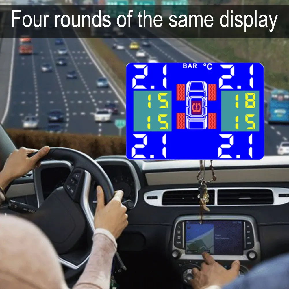 * Легко увидеть большой экран во время вождения, с зуммером, чтобы предупредить водителя. С технологией беспроводной передачи, он будет звучать сразу, когда датчик обнаруживает ненормальную температуру в шинах или условия давления.