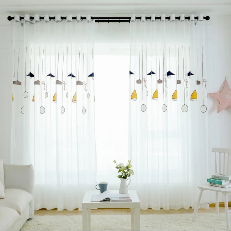 Занавеска на окно, люстра, дизайн детской комнаты, корейский стиль, минимализм, на заказ, для гостиной, сетчатая занавеска, прозрачная ткань