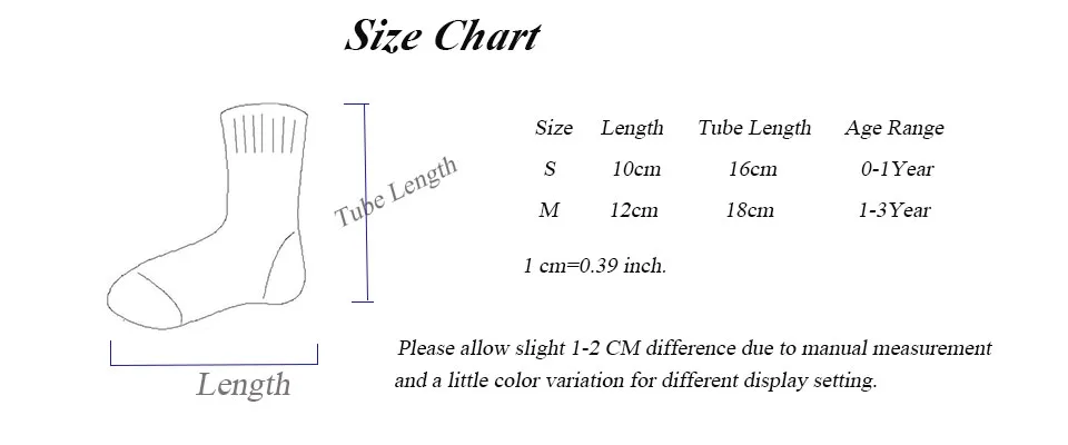 Возможны незначительные отклонения в 1-2 см из-за ручного измерения и незначительные отклонения цвета для различных настроек дисплея. 1 см = 0,39 дюймов. Размер: S/длина: 10 см/длина трубки: 16 см/Возраст: 0-1 год Размер: M/длина: 12 см/длина трубки: 18 см/Возраст: 1-3 года Примечание: 1. Пожалуйста, посмотрите шаблон размера, покупайте с осторожностью, спасибо. 2. Измерение вручную может быть отклонением в 1-2 см. 3. Цвет предмета может быть немного светлее или темнее, чем на фотографии.