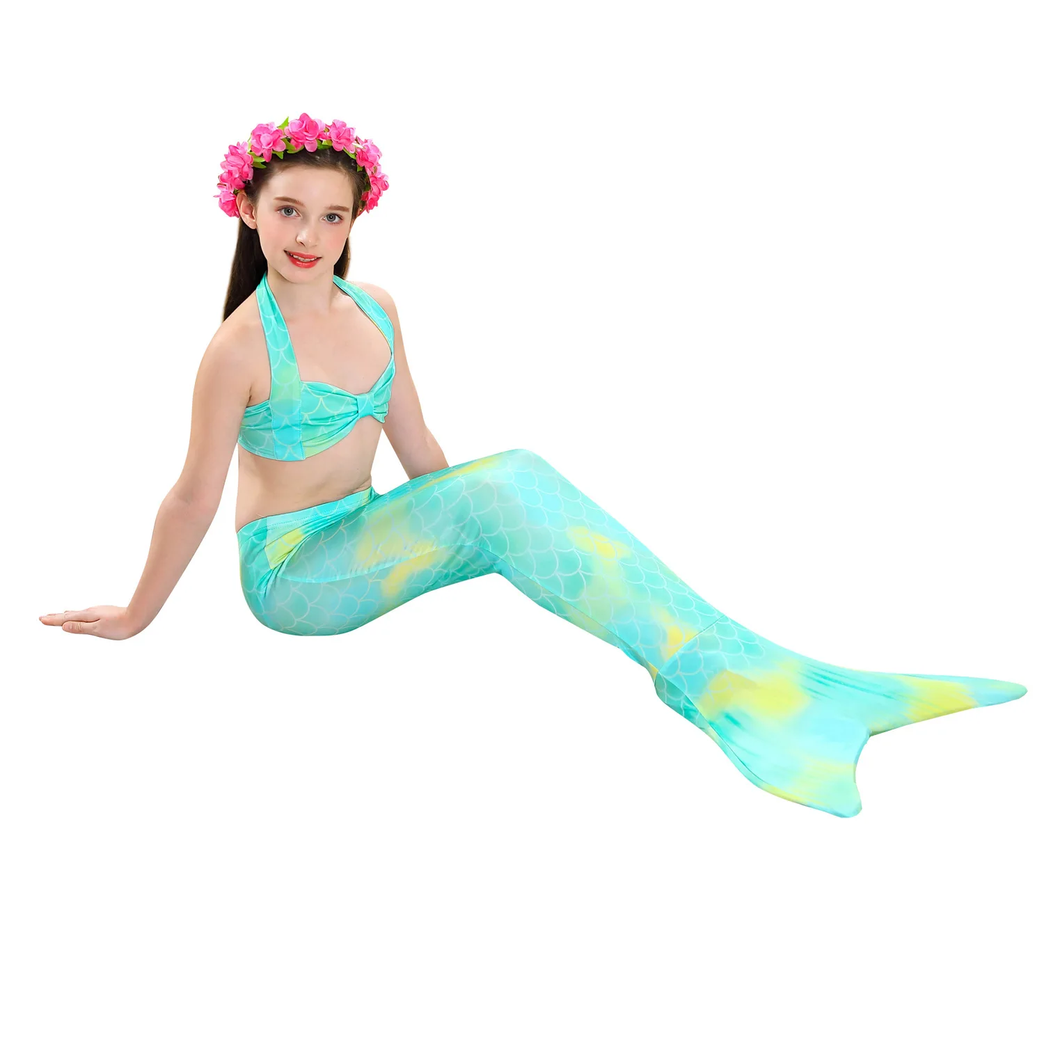 3 шт./компл. Моноласты хвост русалки костюм бикини для детей; Толстовка с капюшоном для мальчиков и девочек; Плавательный Cola De Sirena конского De Sereia без Моноласты От 3 до 12 лет C39513CH