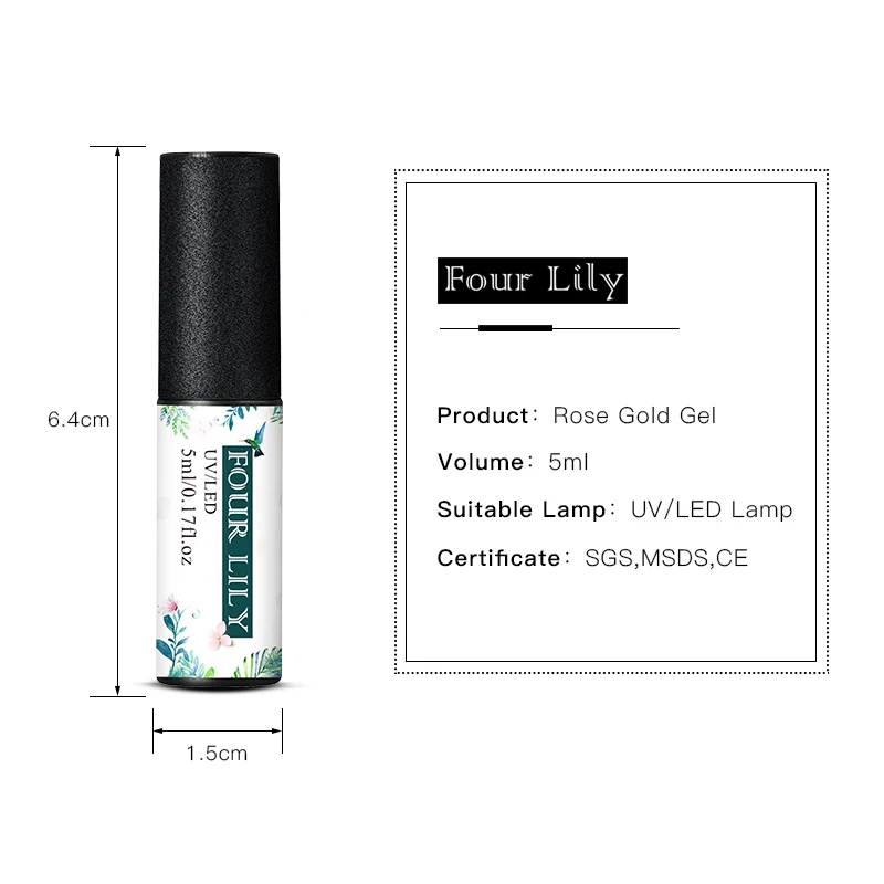 1 бутылка четыре лилии 5 мл, Розовый Золотой Цвет Гель-лак для ногтей