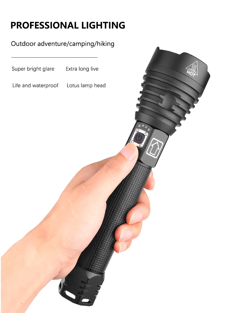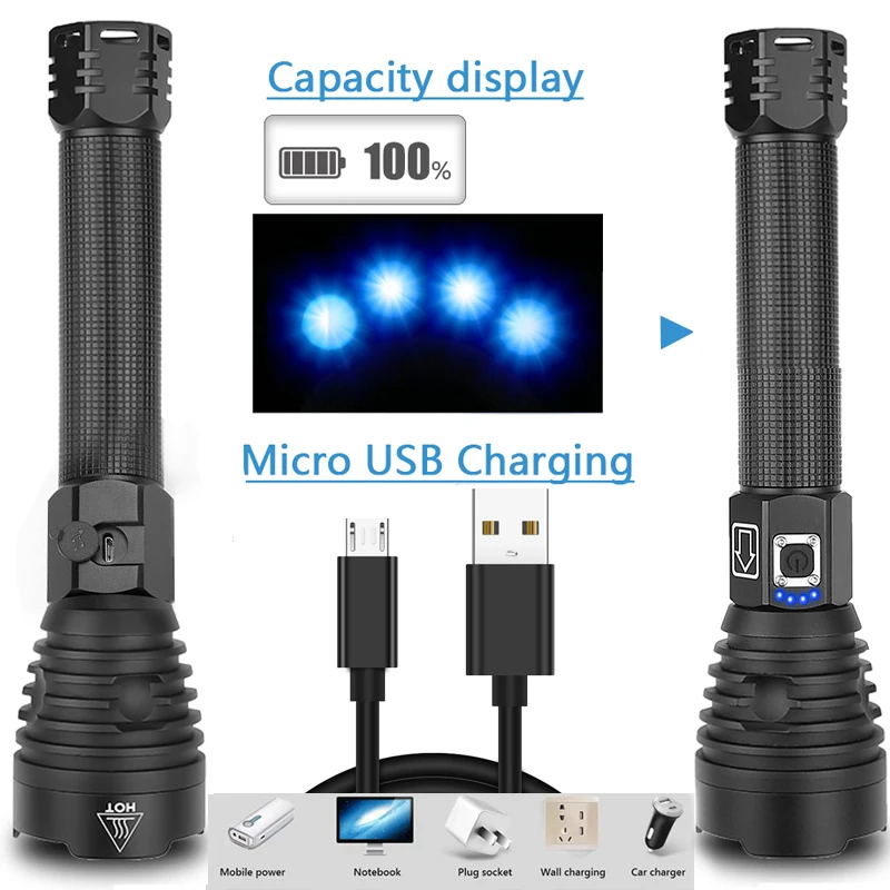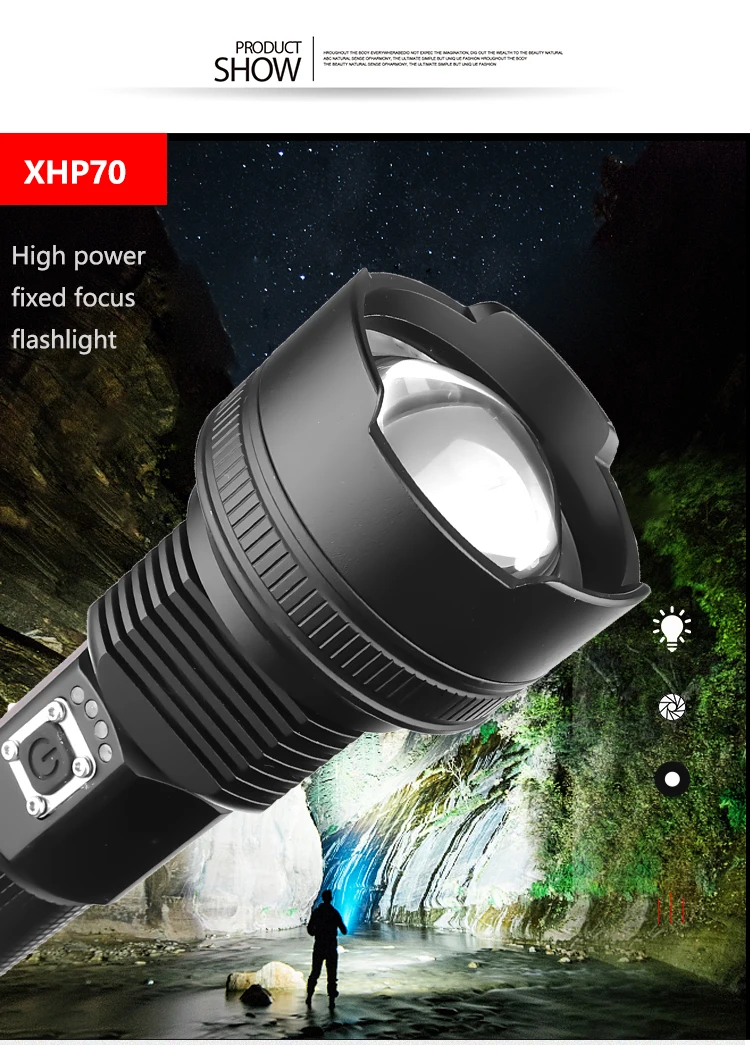 Super Bright XHP70 LED Flashlight XLamp Zoom Torch Powerful Light USB Rechargeable Waterproof Lamp use 18650 26650 for Camping