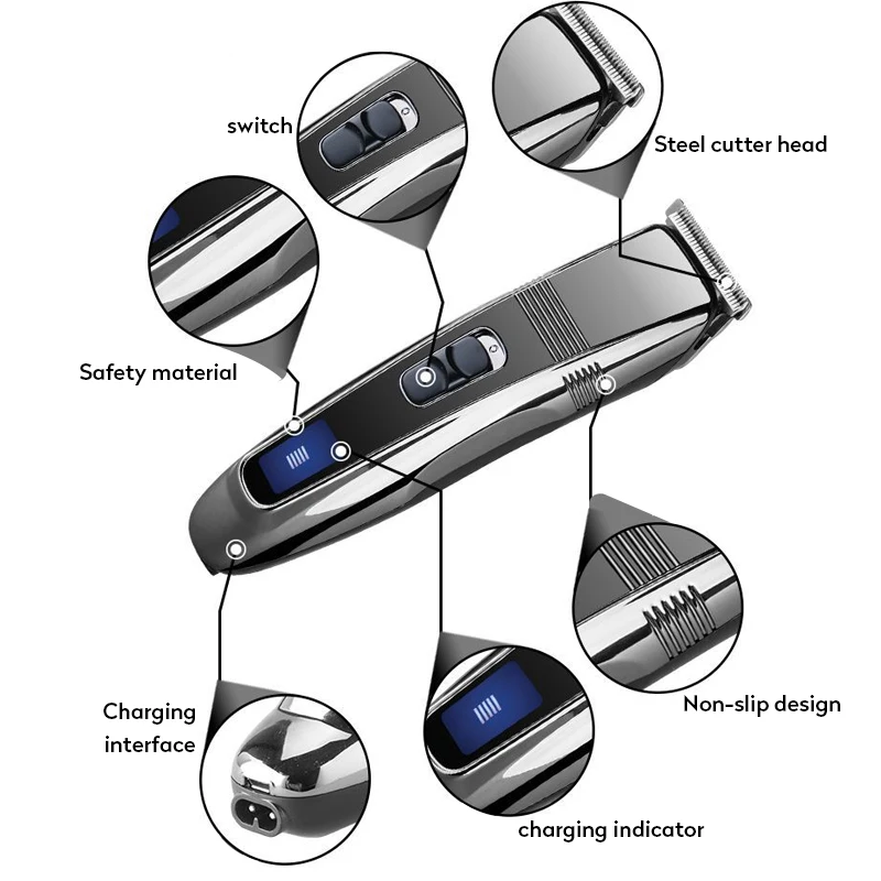 Управление одной кнопкой, простота в эксплуатации. Острое лезвие из нержавеющей стали позволяет легко и гладко обрезать волосы, а лезвие может быть съемным, легко моется. Поставляется с 4 различными (3 мм/6 мм/9 мм/12 мм) концевыми щетками, легче контролировать длину резки и получить лучший эффект резки. Эргономичный Противоскользящий корпус, удобно держать в руке. Шнур и беспроводной, двойного назначения. Встроенный литий-ионный аккумулятор, после 2 часов полной зарядки, может использоваться непрерывно в течение 90 минут.