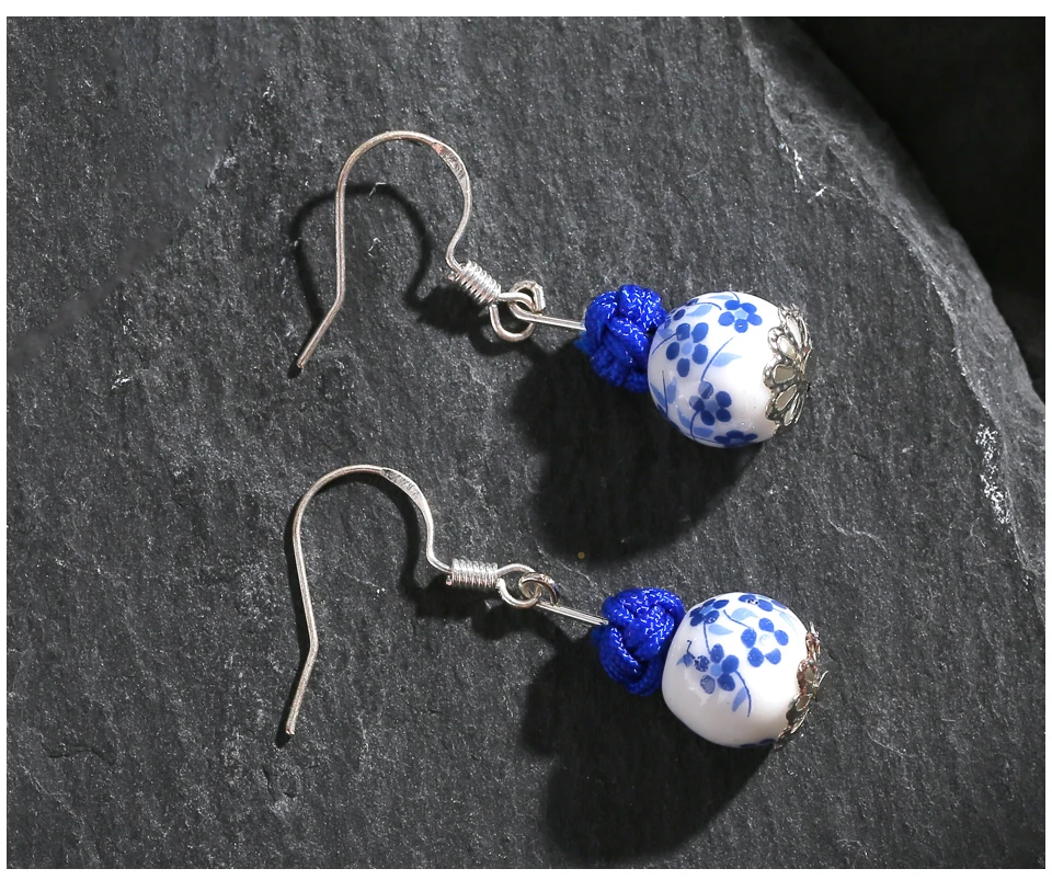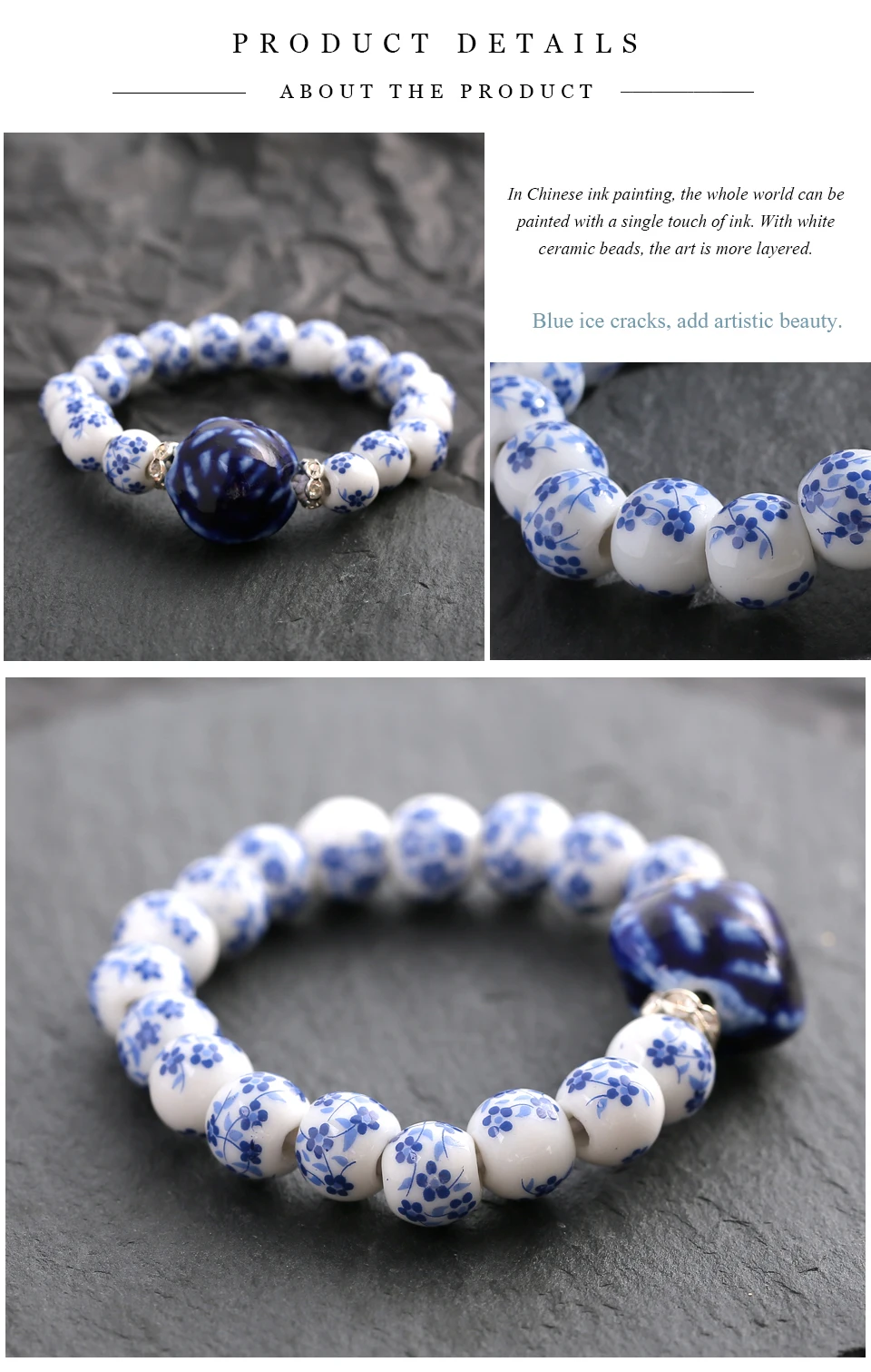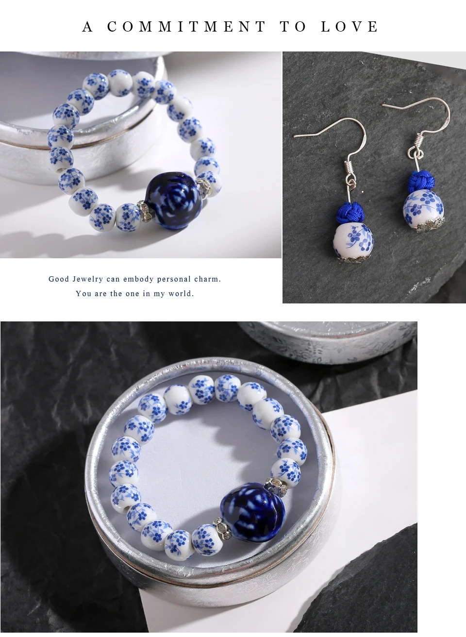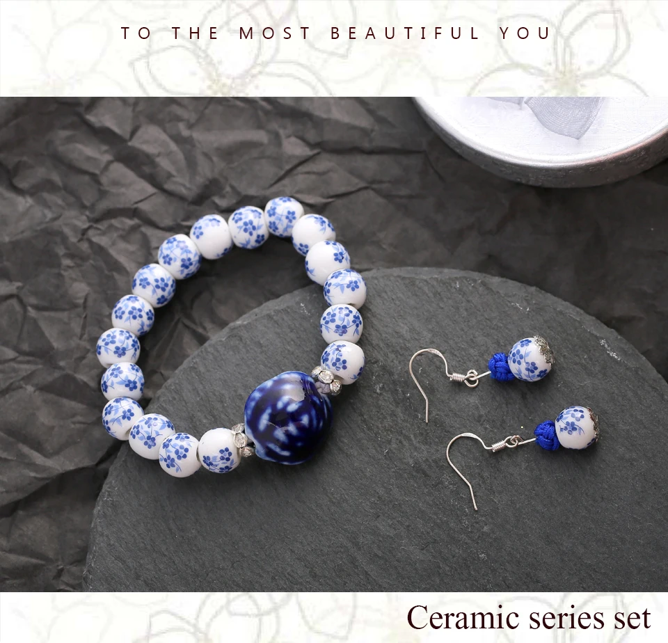 Модные керамические украшения ручной работы, современный китайский стиль, синие и белые фарфоровые бусины, керамические браслеты, серьги, наборы для женщин