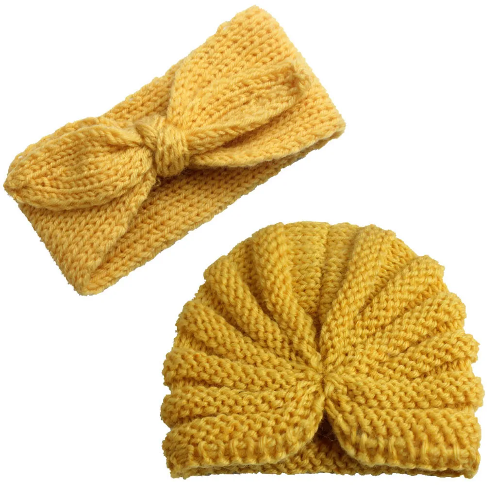 Вязаная шапка-тюрбан для новорожденных мальчиков и девочек, повязка на голову, шапка головной убор, комплекты шапок