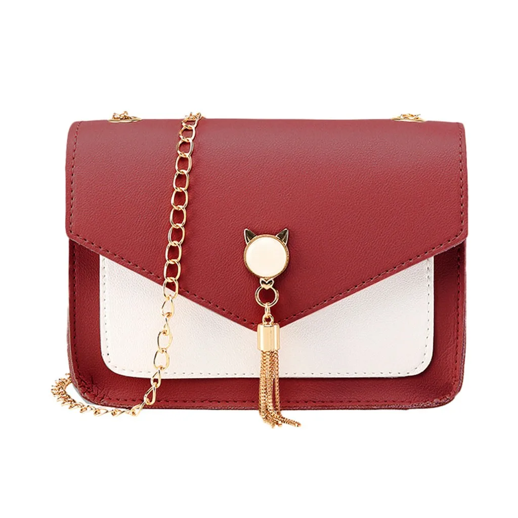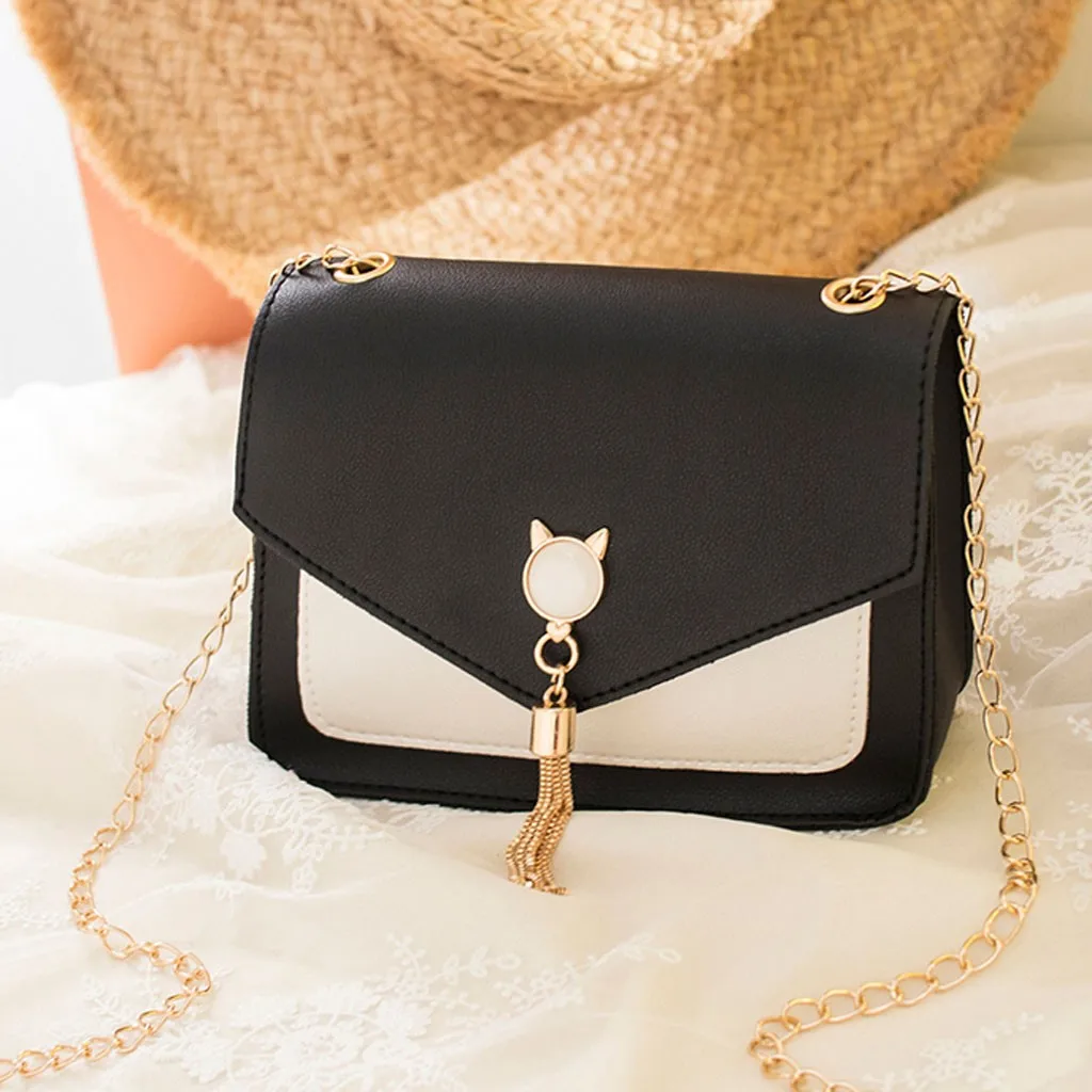 Женская сумка на плечо с бахромой, маленькая квадратная сумка-мессенджер с кошкой, сумка для мобильного телефона