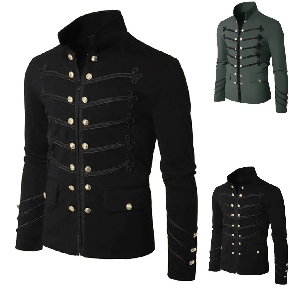 Мужское пальто, куртка, готическое пальто на пуговицах с вышивкой, форменный костюм, праздничная верхняя одежда