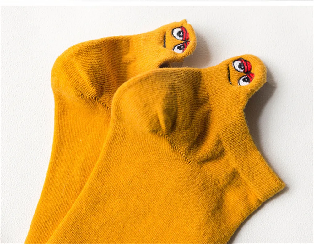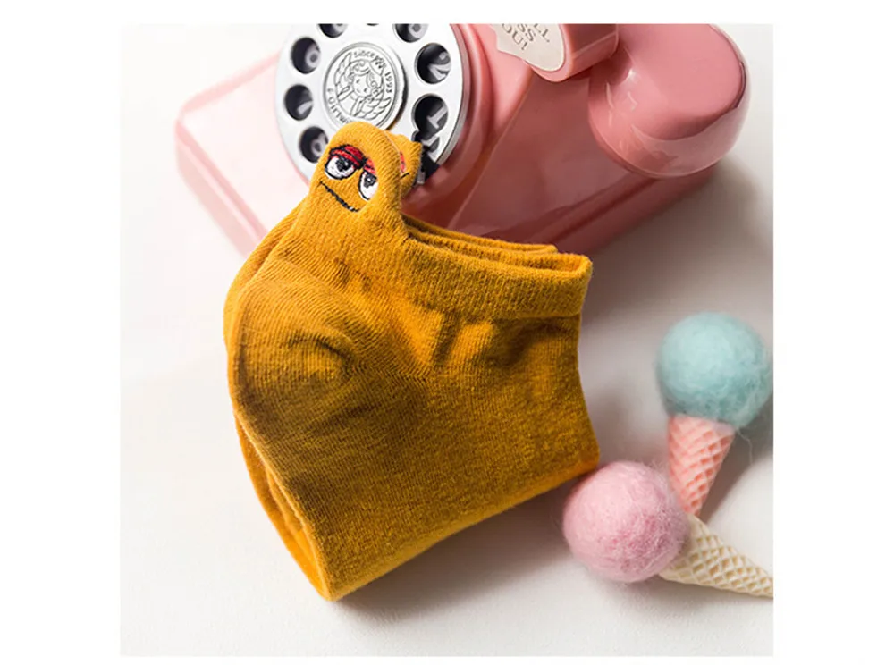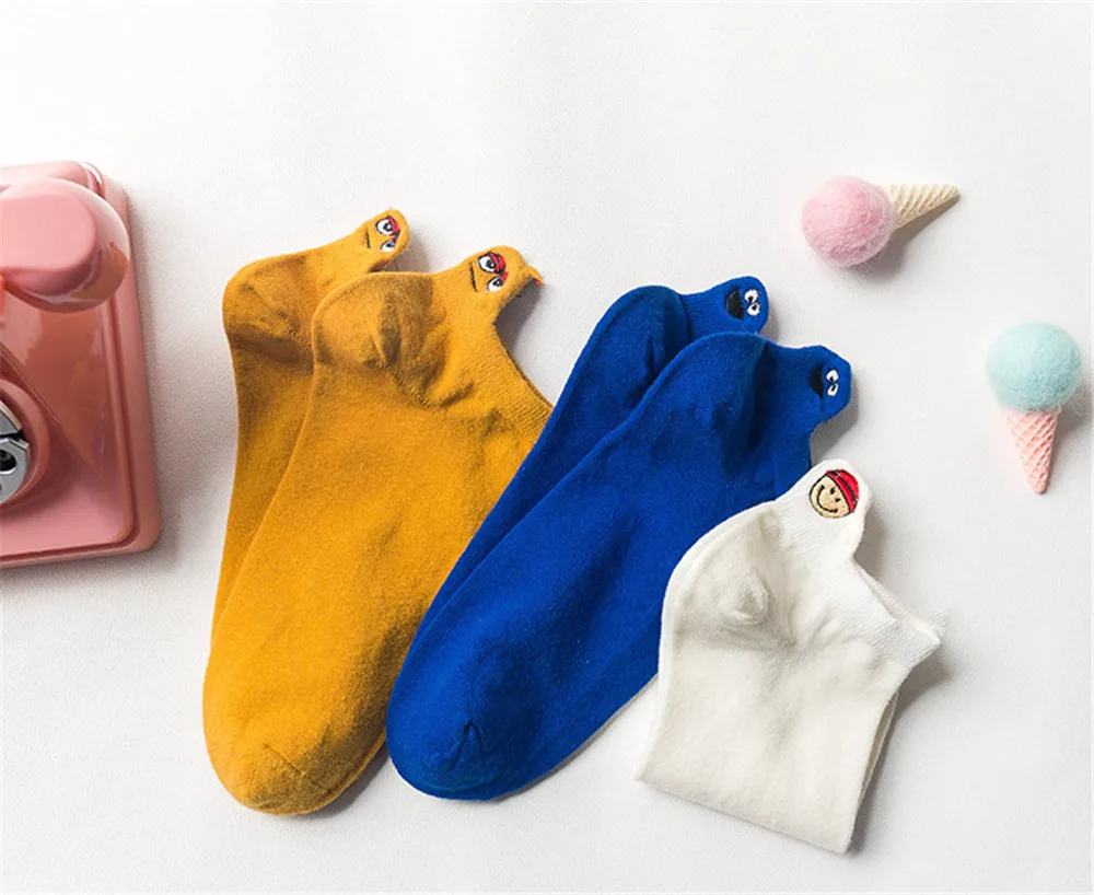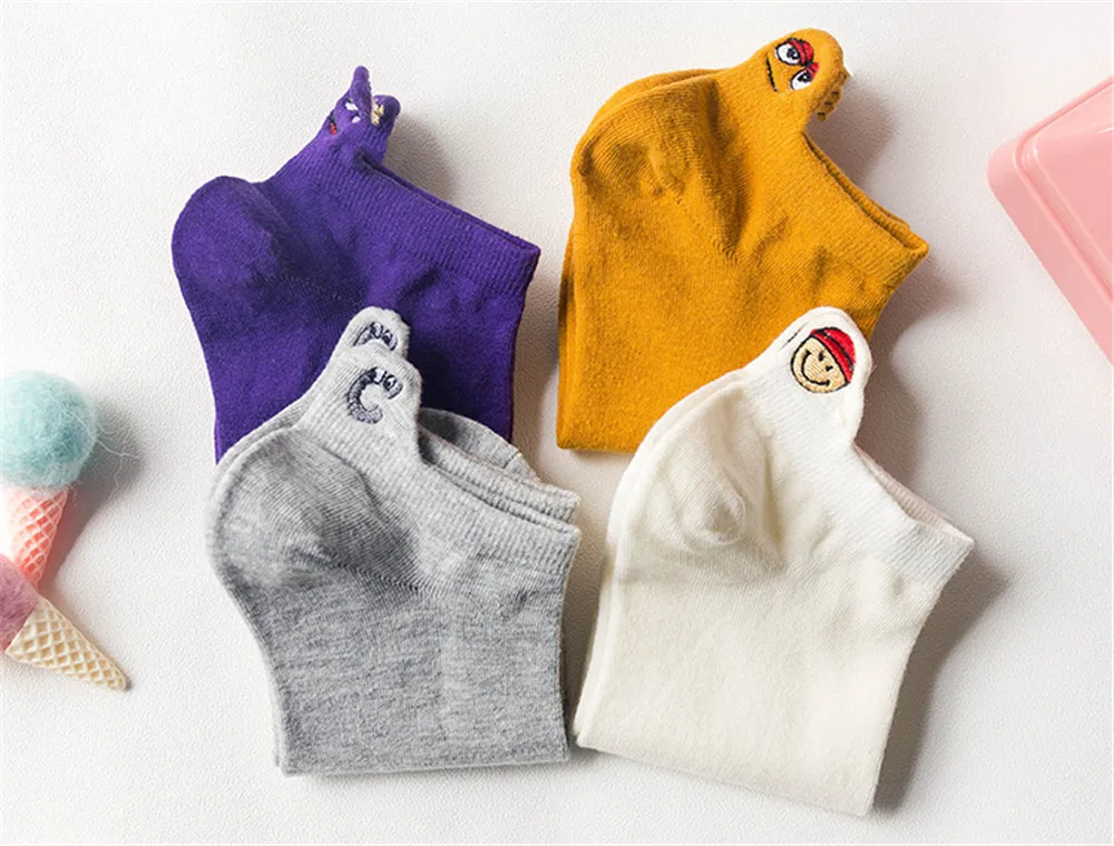 Женские хлопковые носки, милые короткие носки до лодыжки, повседневные носки на каблуке с маленькими ушками, носки с вышивкой, Монстры из мультфильма, 2019