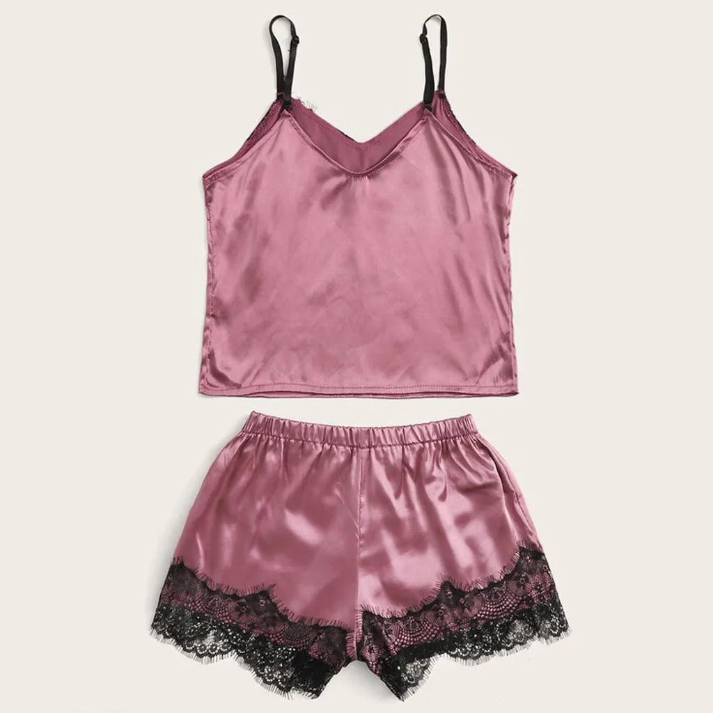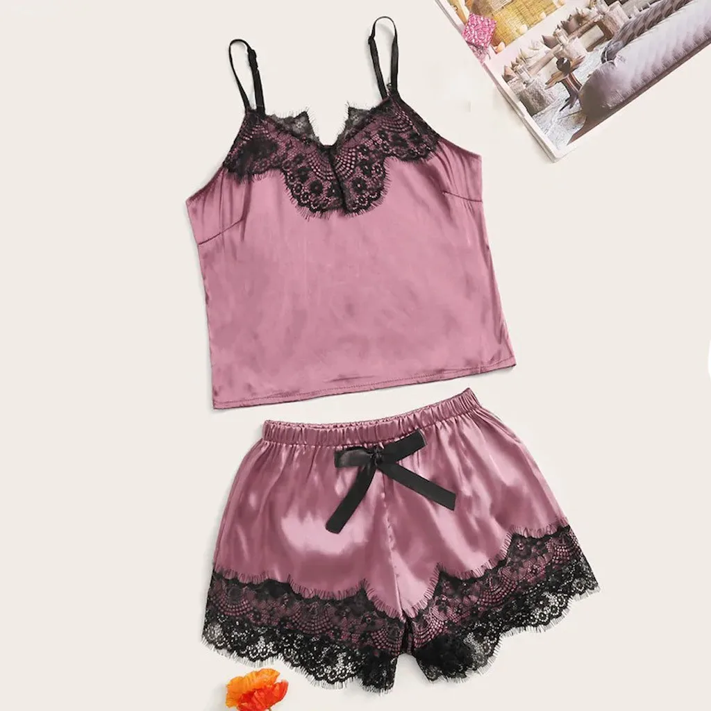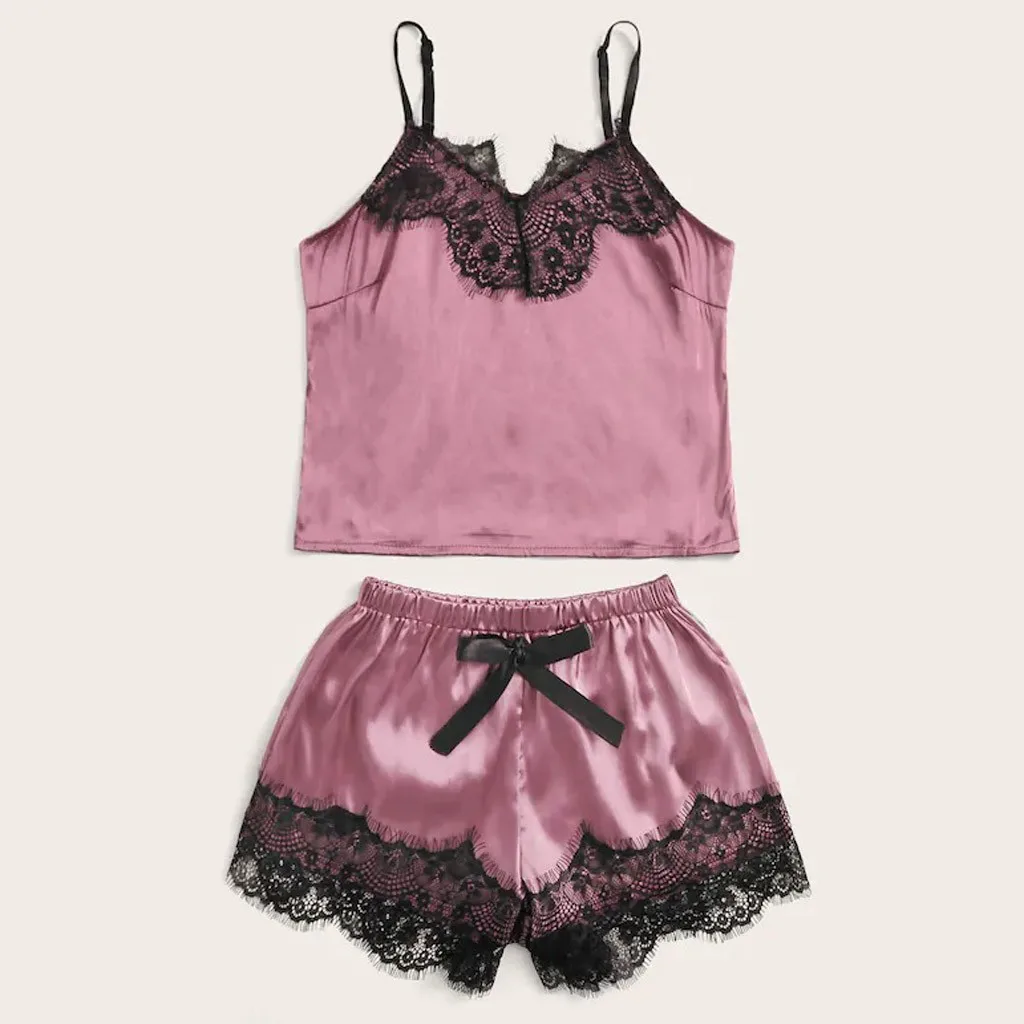 Новый женский кружевной атласный беспроводной бюстгальтер, лифчик, пижама, шорты с бантиком, комплект