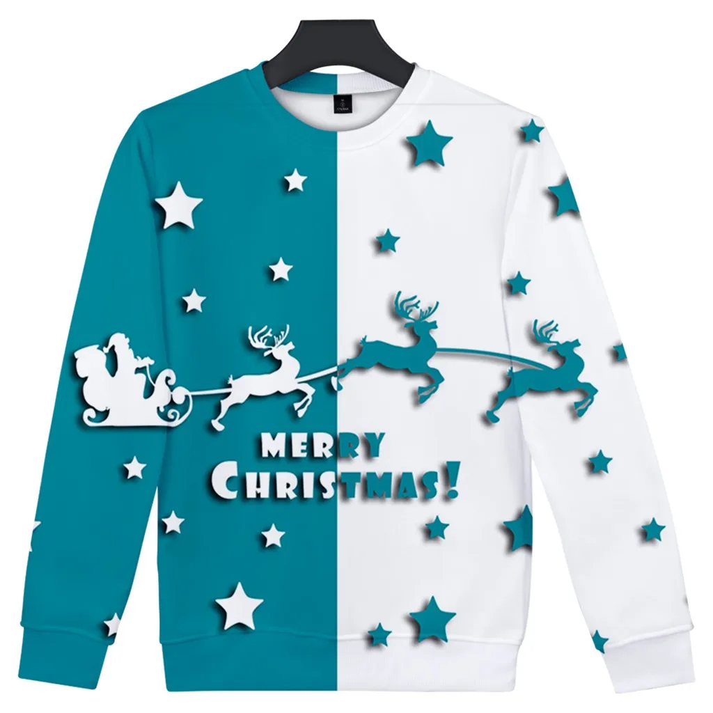 Женский Рождественский пуловер с 3D принтом и длинным рукавом, толстовка, топы, блузка