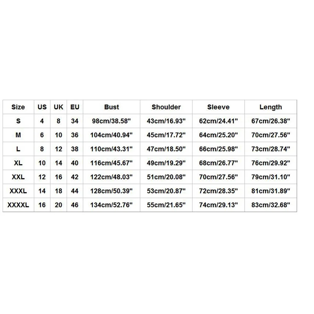 Размер Свяжитесь с нами Великобритания ЕС Обхват груди Сумка на плечо Рукава Длина S 4 8 34 98 см/38,58'' 43 см для ухода за ребенком для мам/16,93'' 62 см/24,41'' 67 см/26,38'' М 6 10 36 104 см/40,94'' 45 см/17,72'' Высота голенища 64 см; 25,20'' 70 см/27,56'' L 8 12 38 110 см/43,31'' 47 см/18,50'' 66 см/25,98'' 73 см/28,74'' XL 10 14 40 116 см/45,67'' 49 см/19,29'' 68 см/26,77'' 76 см/29,92'' XXL 12 16 42 122 см/48,03'' 51 см/20,08'' 70 см/27,56'' 79 см/31,10'' XХХL 14 18 44 128 см/50,39'' 53 см/20,87'' 72 см/28,35'' 81 см/31,89'' XXXXL 16 20 46 134 см/52,76'' 55 см/21,65'' 74 см/29,13'' 83 см/32,68''