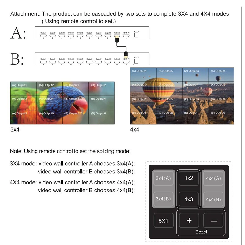 Каскадный режим сращивания: Поддержка 3X4 4X4 (укажите, что 2 устройства должны быть каскадными)