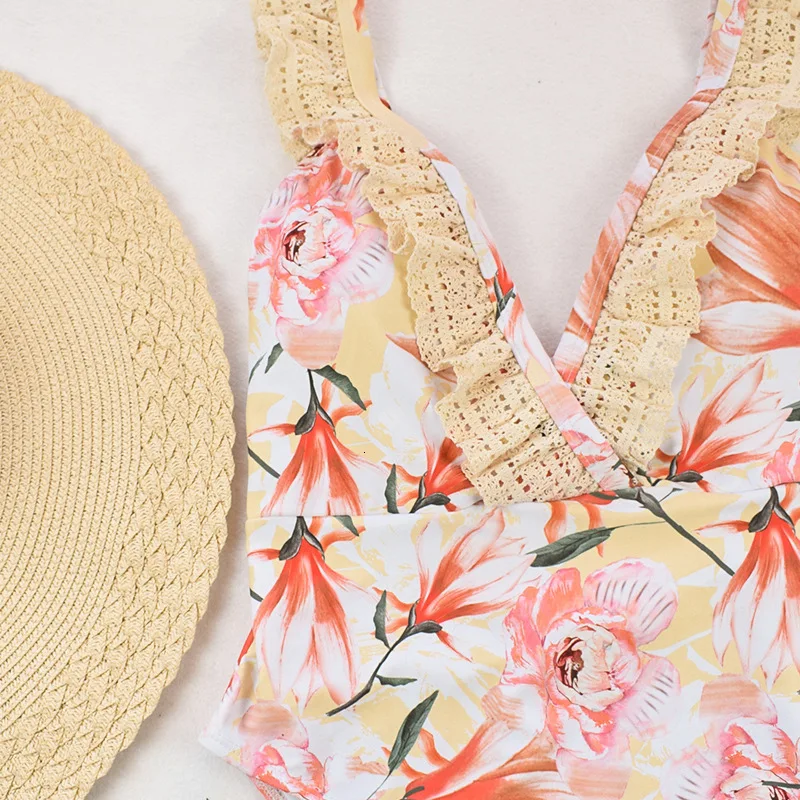 Сексуальный желтый цветочный Цельный купальник закрытый пуш-ап купальник плюс размер женский купальный костюм для девочек Женский Пляжный бассейн 2019 лето