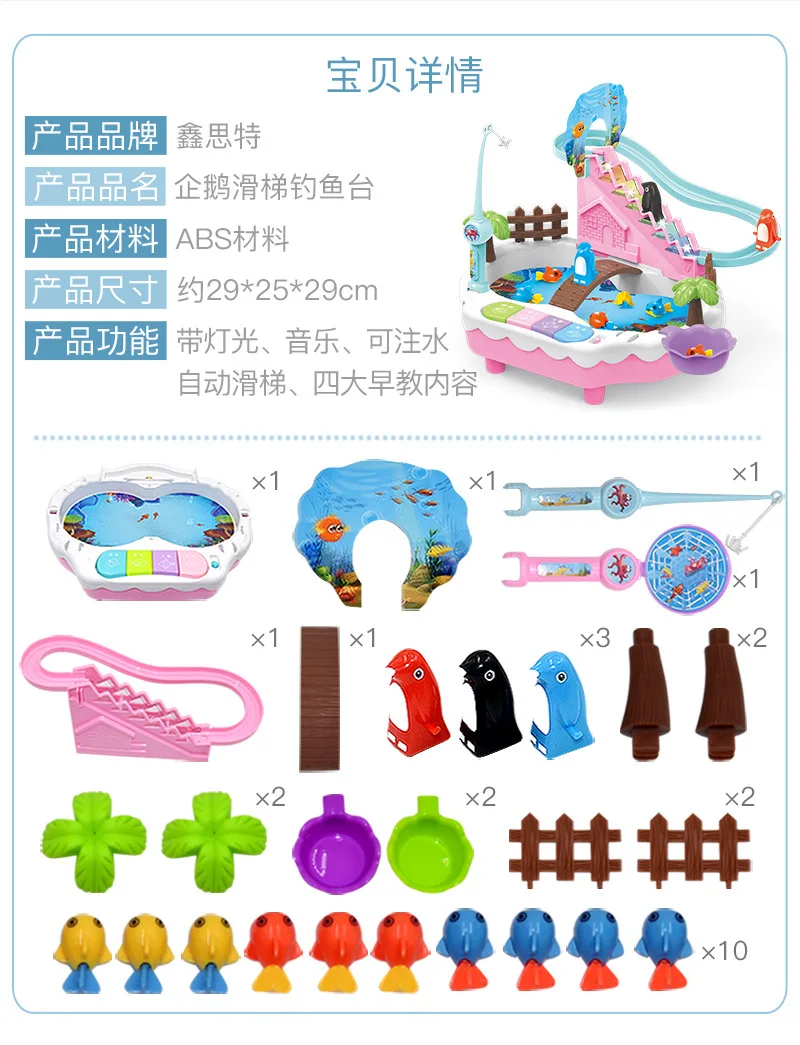 Прекрасный внешний вид и розовый нежный цвет, ребенку очень нравится. Развивайте Детские практичные и наблюдательные навыки. Тренируйте способность вашего ребенка распознавать размер, форму и структуру. Стимулируйте ребенка, чтобы он исследовал вещи и удовлетворил его интерес. Два режима игры можно использовать для ловли рыбы. Технические характеристики: Категория: рыболовные игрушки Цвет: как показано на рисунке Материал: пластик Функция: используйте руки и мозги Размер изделия: 28,5X18X24 см Примечание: батарея не включает Упаковочный лист: 1 Набор * рыболовные игрушки
