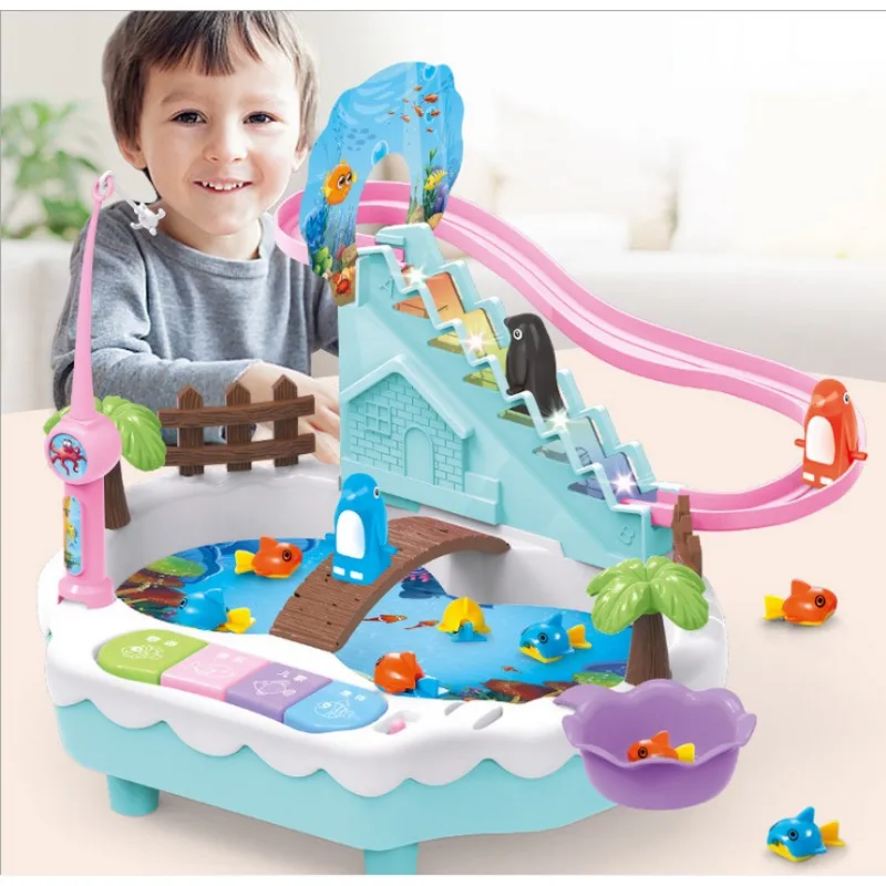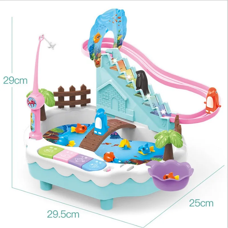 2019 Фирменная Новинка электрические магнитные игрушки для рыбалки для детей возрастом от 3 до 6 лет с изображением пингвина поднимающийся по лестнице музыкальным светом интерактивная игра развивающие игрушки