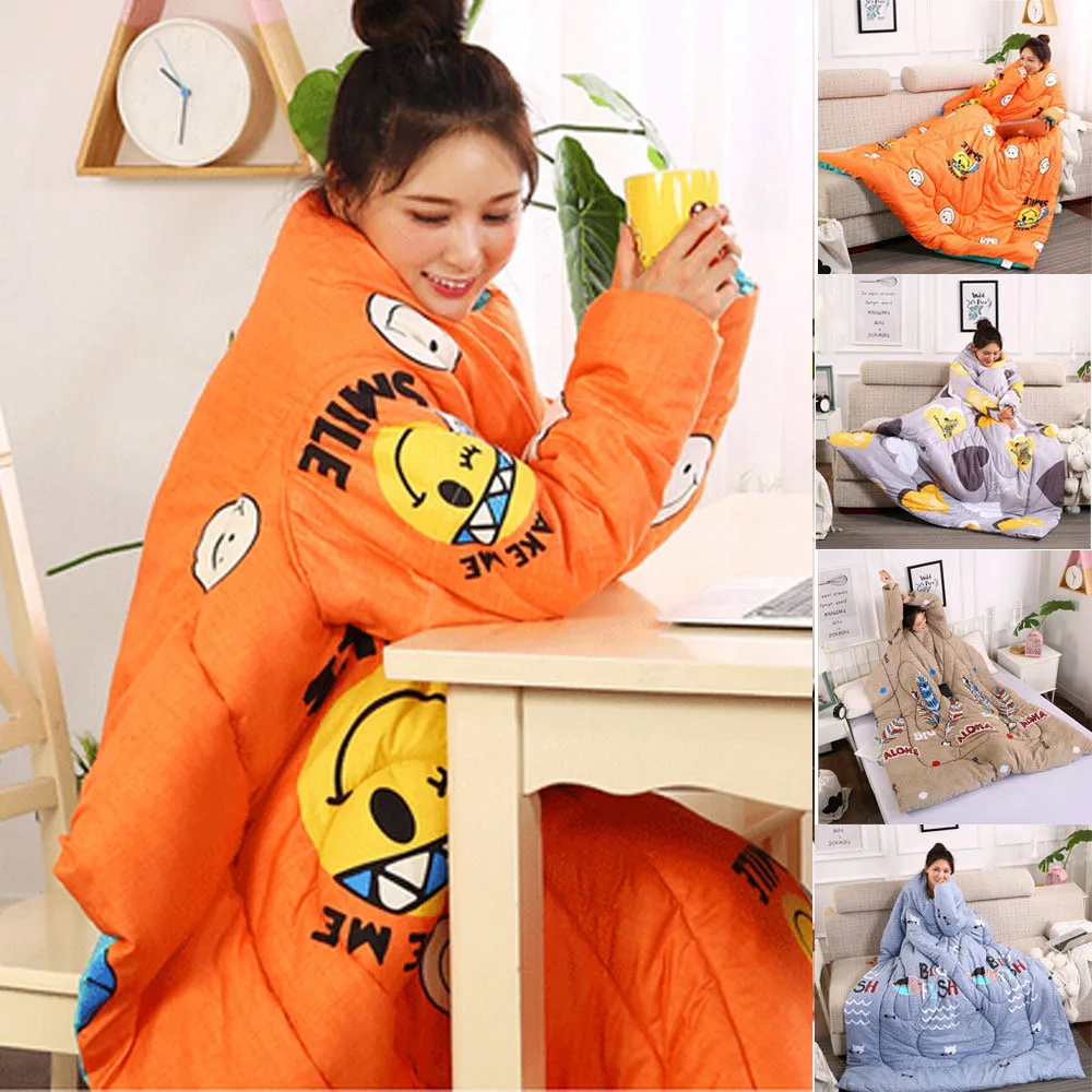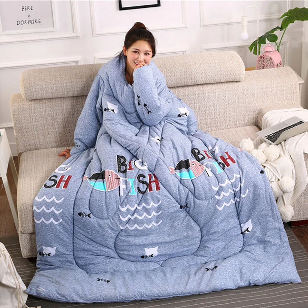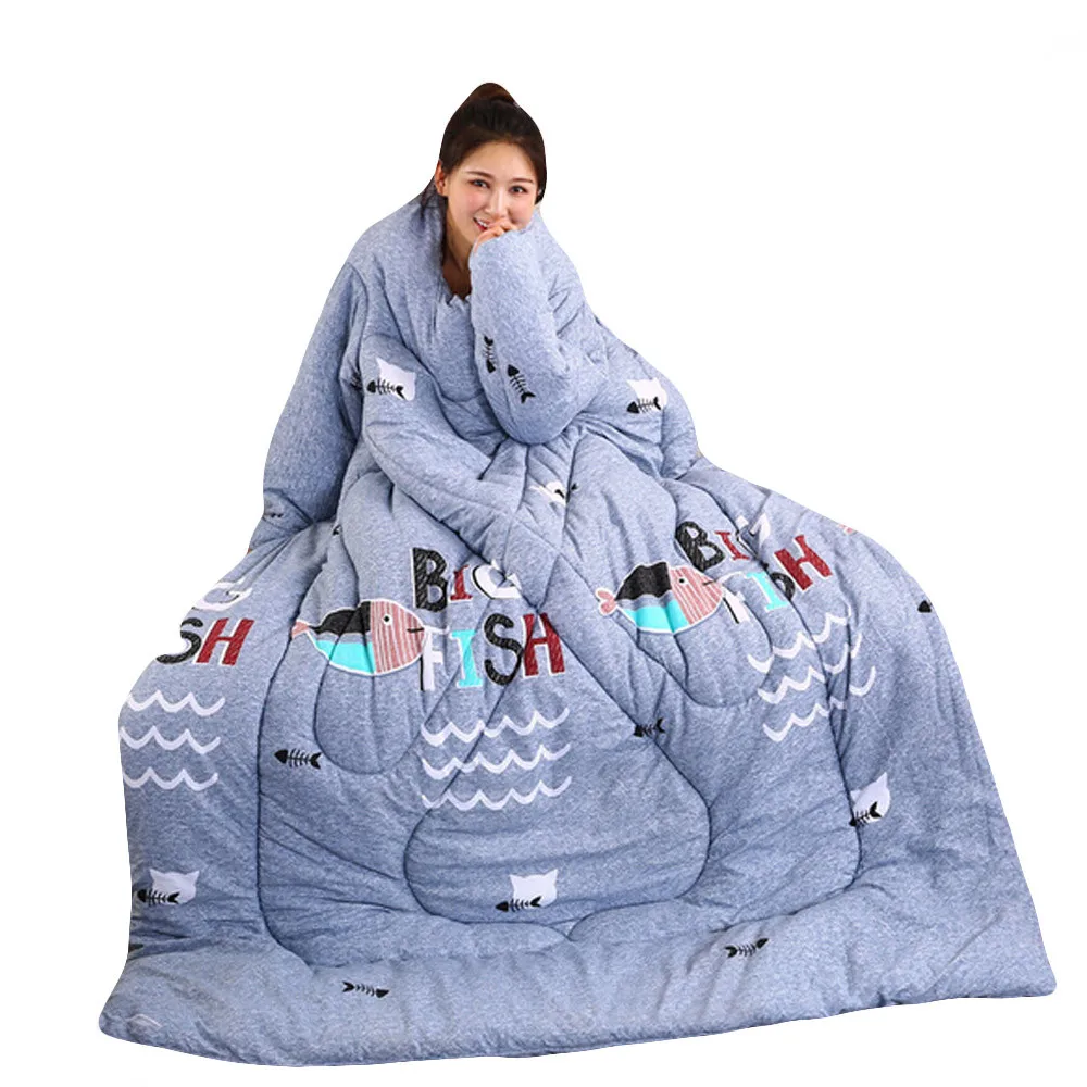 Многофункциональный Зимний теплый костюм с длинными рукавами и круглым вырезом для влюбленных, утепленное одеяло с принтом