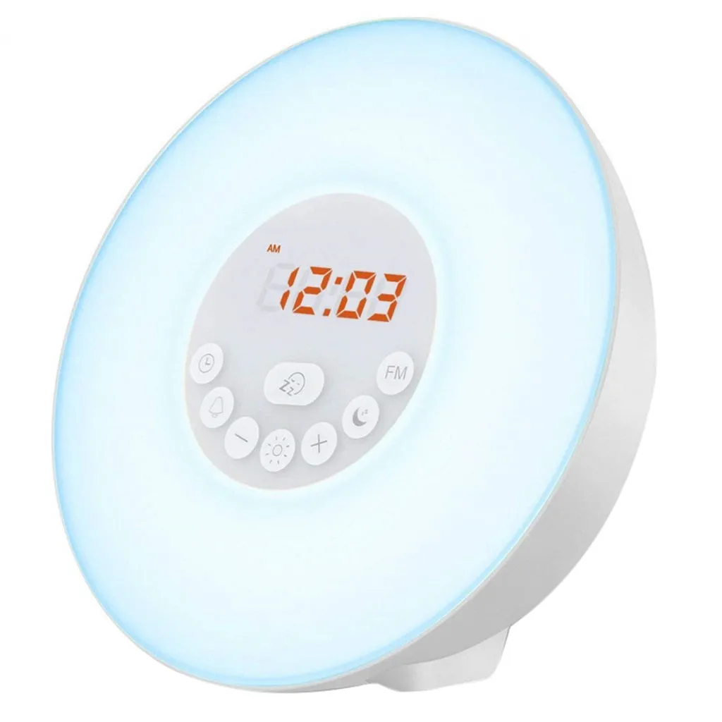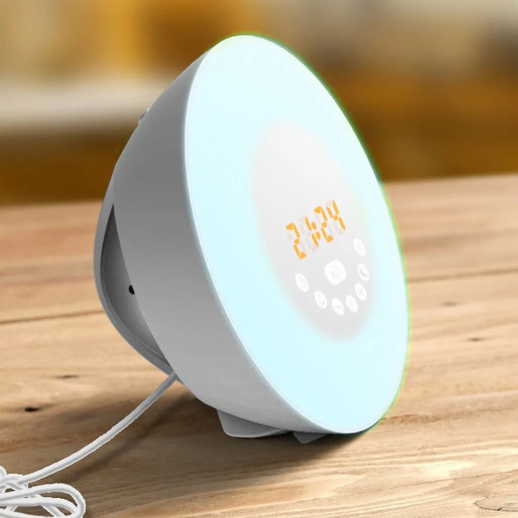 Светильник будильника пробуждения, часы восхода/заката, цифровые часы с fm-радио, 7 цветов, светильник, функция звуков, сенсорное управление, Новинка