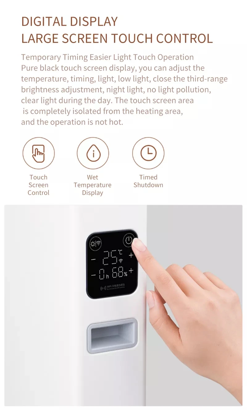● Сенсорное управление, отображение влажной температуры, отключение по времени
