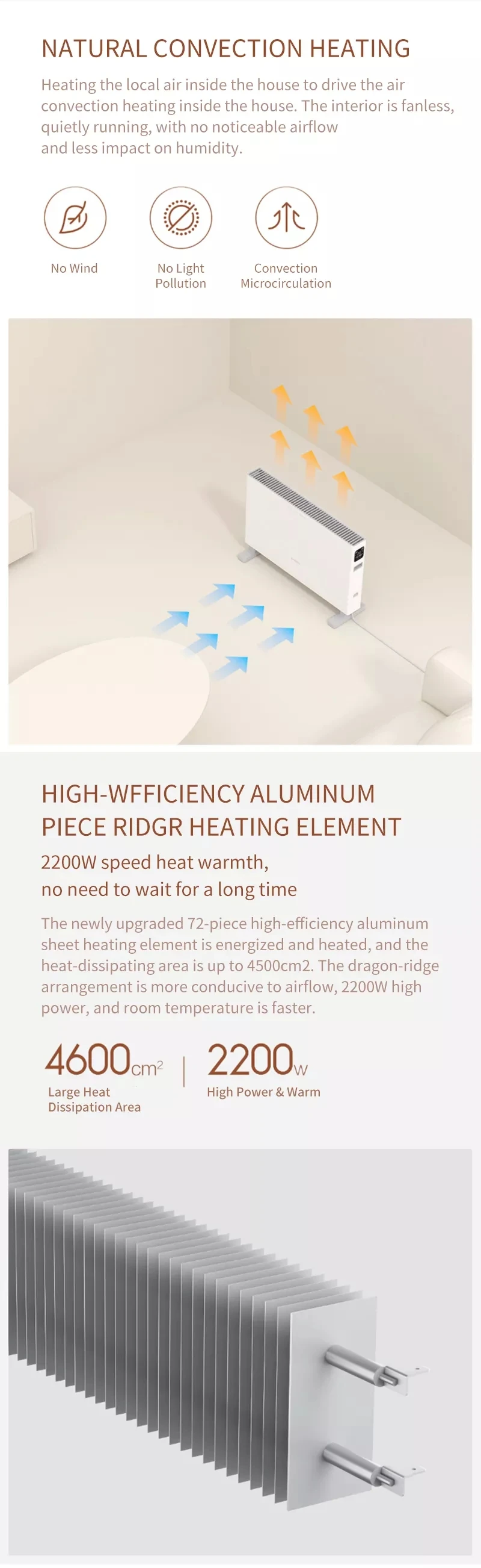 ● Новый модернизированный 72-piece с высокой пропускной способностью алюминиевый лист нагревательный элемент имеет площадь рассеивания тепла до 4500cm2 и наивысшей мощности 2200W, и температура повышается быстрее.
