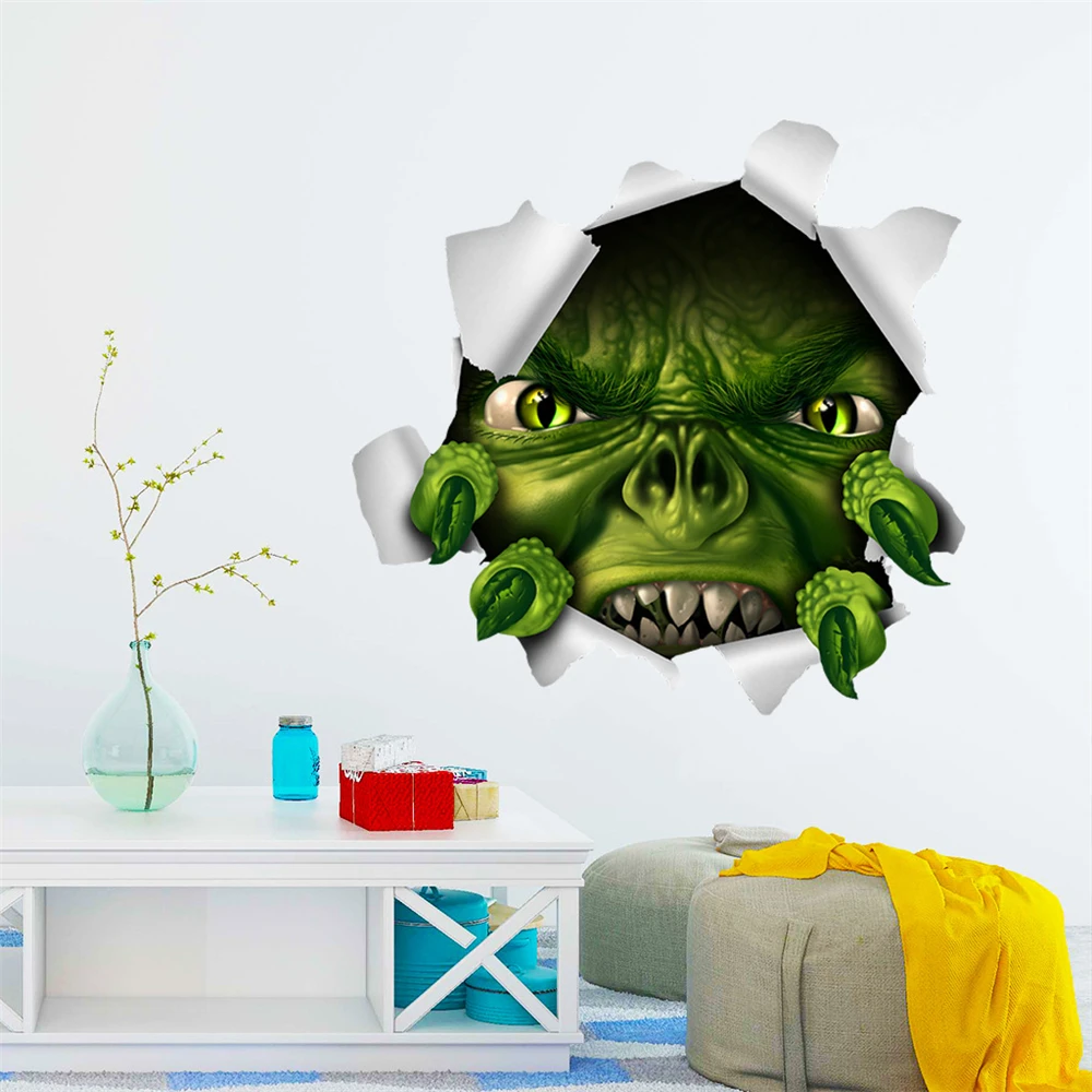 3D монстр Хэллоуин жуткая кровавая стена сломанная стена стикер ужас украшение призрак наклейка домашний декор Фреска праздничные вечерние принадлежности