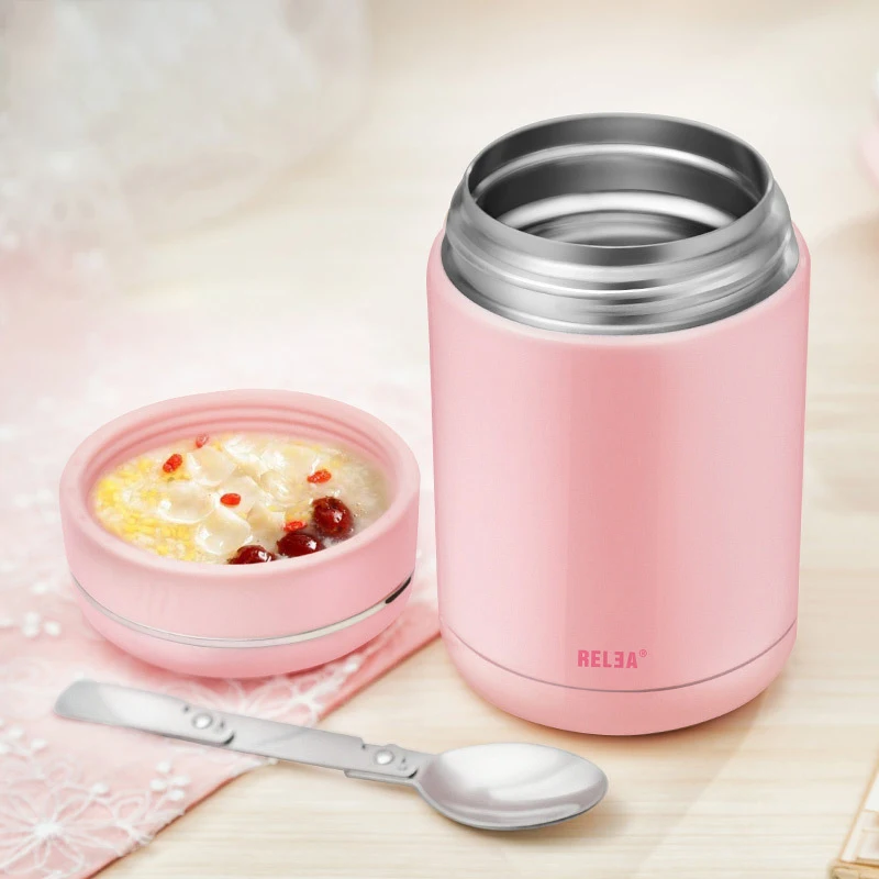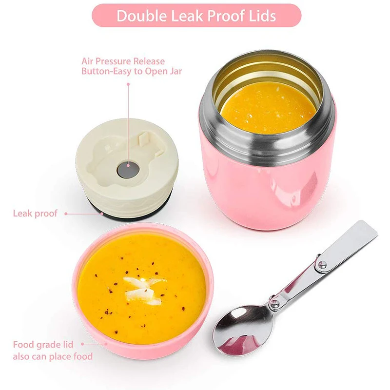 Технология вакуумной изоляции-Двойная Стенка из нержавеющей стали, кроме того, уникальная изоляция с медным покрытием и бесшовная сварочная технология, отличная Красивая Изолированная пищевая банка для горячей пищи и холодной пищи для детей, взрослых, для школьного офиса.