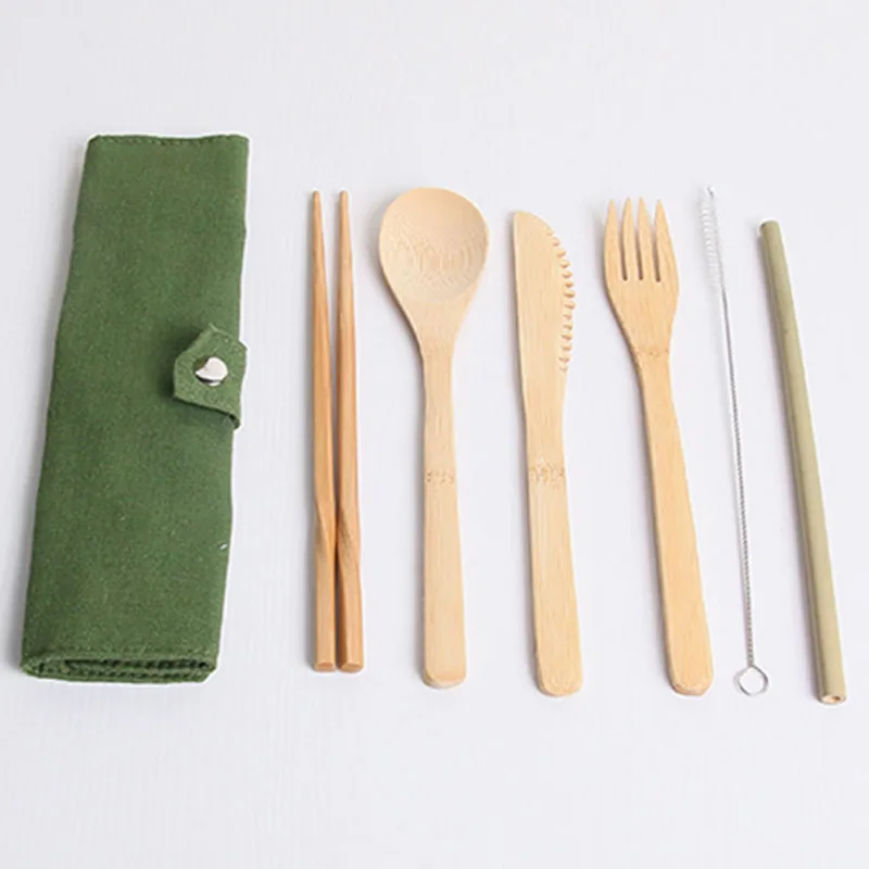 В комплект входит: 1 нож + 1 вилка + 1 ложка + 1 палочка для еды + 1 щетка + 1 бамбуковая соломинка + 1 сумка (7 шт. в комплекте)