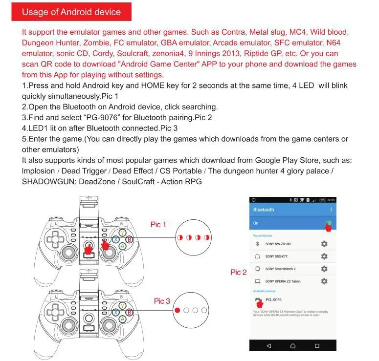 Этот геймпад поддерживает игры по Bluetooth, с поддержкой Android планшета/смартфона/ТВ-приставки/smart TV / VR/планшета, MAC OSX PC и Win7 / Win8 / Win10/ Win XP ПК без каких-либо драйверов.