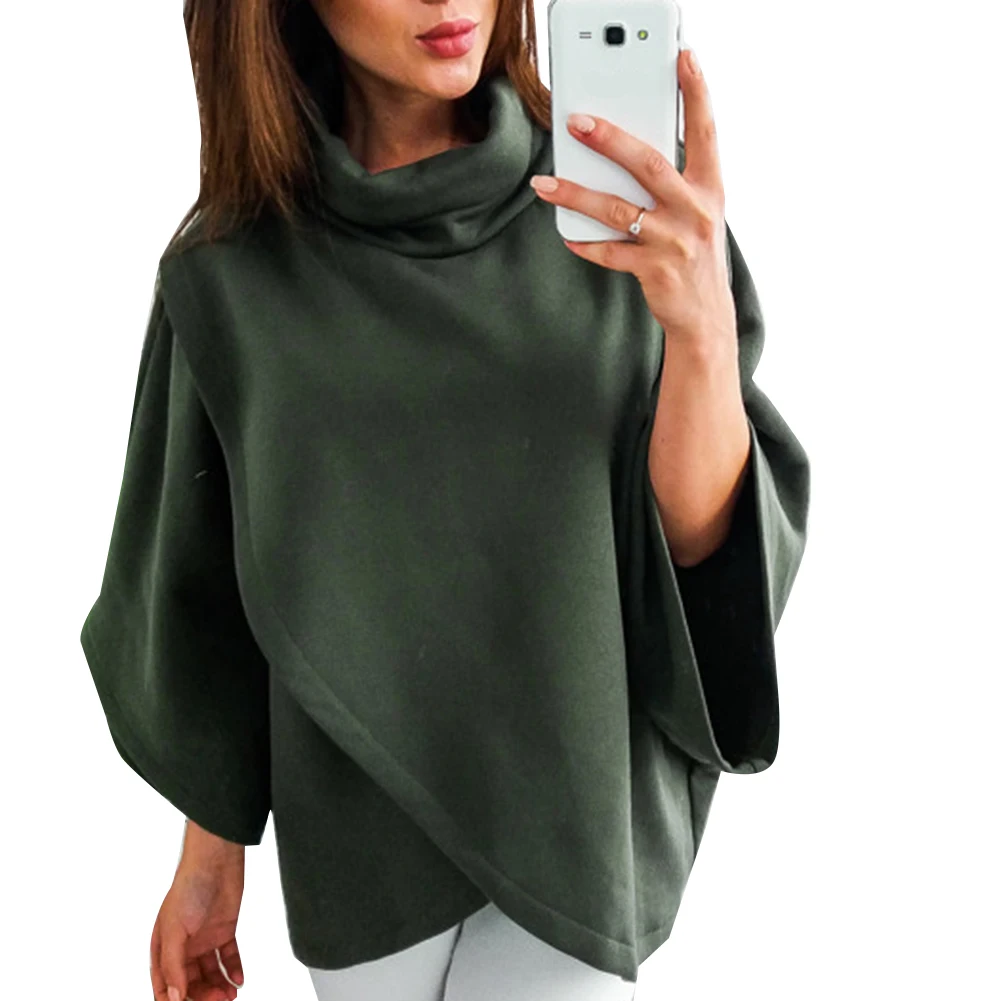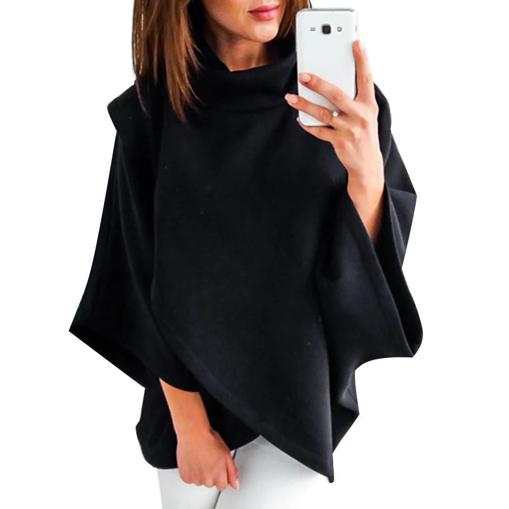 Женская водолазка с длинным рукавом, однотонная накидка, асимметричный пуловер, блузка, Топ