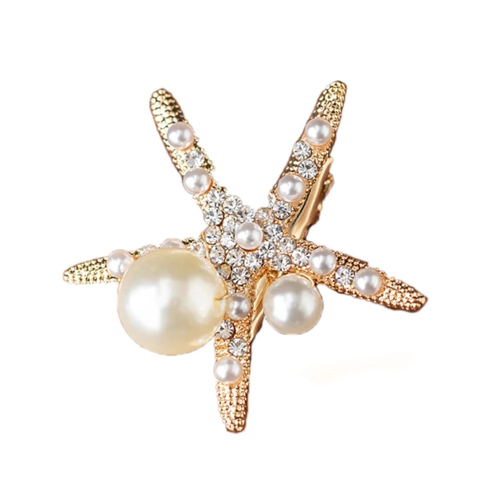 Тип изделия: заколки для волос материал: сплав, жемчуг Цвет: Золотой Стиль: Мода Пол: женская форма узор: Морская звезда комплектация: 1 шпилька